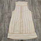 Faherty Brand Isha Dress Womens M Gold Stripe Organic Cotton Sleeveless Boho Description: Faherty Brand “Isha” dress in gold stripe, women’s size M. Crafted from 100% organic cotton with pintuck details at the bodice, agoya shell buttons, collar band, and hidden side pockets. Sleeveless with a relaxed swing silhouette for easy summer wear, designed with casual-cool versatility in mind. Shoulder to hem approx. 35". Measurements are included in the photos. Condition: excellent pre-owned. Keywords: Bohemian, Romantic, Artsy, Cottagecore, Light Academia, Coastal Grandmother, Resort, Vacation, Travel, Summer, Spring, Minimalist, Timeless, Effortless Chic, Quiet Luxury, Understated Elegance, Neutral Tones, Classic Silhouette, Sustainable Fashion, Circular Fashion, Affordable Affluence, Everyday Chic