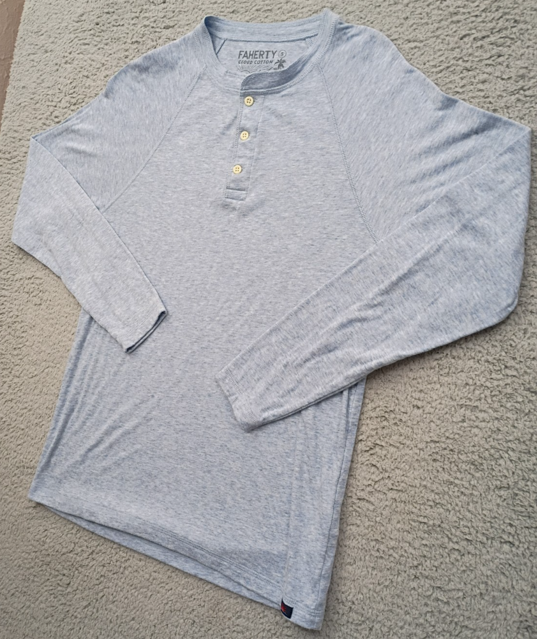 Faherty Men's Cloud Cotton LS Henley Shirt Small Light Blue Pima Soft Pre-owned. Please see photos for condition, measurements and details.