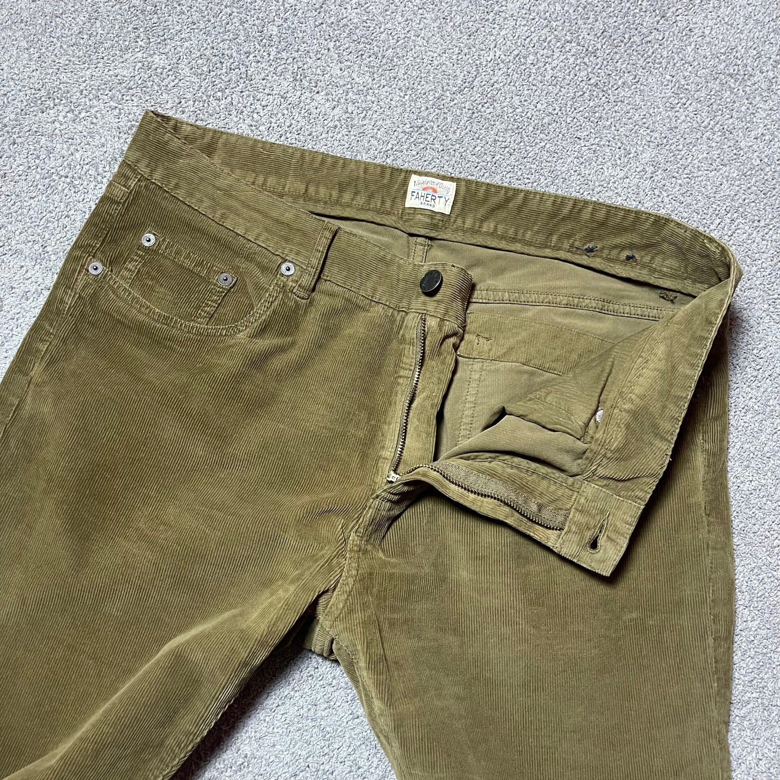 Faherty Stretch Terry Corduroy 5-Pocket Washed Brown Preppy Pant Men's Size: 33x32 pre-owned in great condition