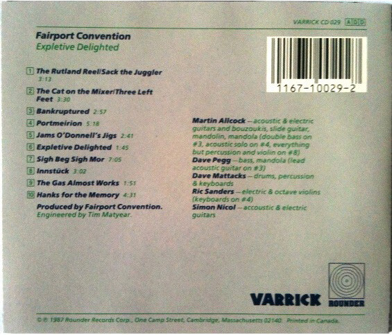 Media Condition : Near Mint (NM or M-) Sleeve Condition : Near Mint (NM or M-) UPC : Genre : Rock, Folk, World, & Country Style : Folk Rock Notes : Rounder Records Corp, One Camp Street, Cambridge, Massachusetts 02140. Printed in Canada Track List : 1. The Rutland Reel / Sack The Juggler 3:13 2. The Cat On The Mixer / 3 Left Feet 3:30 3. Bankruptured 2:57 4. Portmeirion 5:18 5. Jams O'Donnell's Jigs 2:41 6. Expletive Delighted 1:45 7. Sigh Beg Sigh Mór 7:05 8. Innstück 3:02 9. The Gas Almost Works 1:51 10. Hanks For The Memory (Shazam / Pipeline / Apache / Peter Gunn) 4:31 Barcode and Other Identifiers : Barcode 1167-10029-2 Barcode 011671002927 Phonographic Copyright (p) Rounder Records Corp. Copyright (c) Rounder Records Corp. Copyright (c) Woodworm Records Limited Phonographic Copyright (p) Woodworm Records Limited Recorded At Woodworm Studios Mastered At The Town House