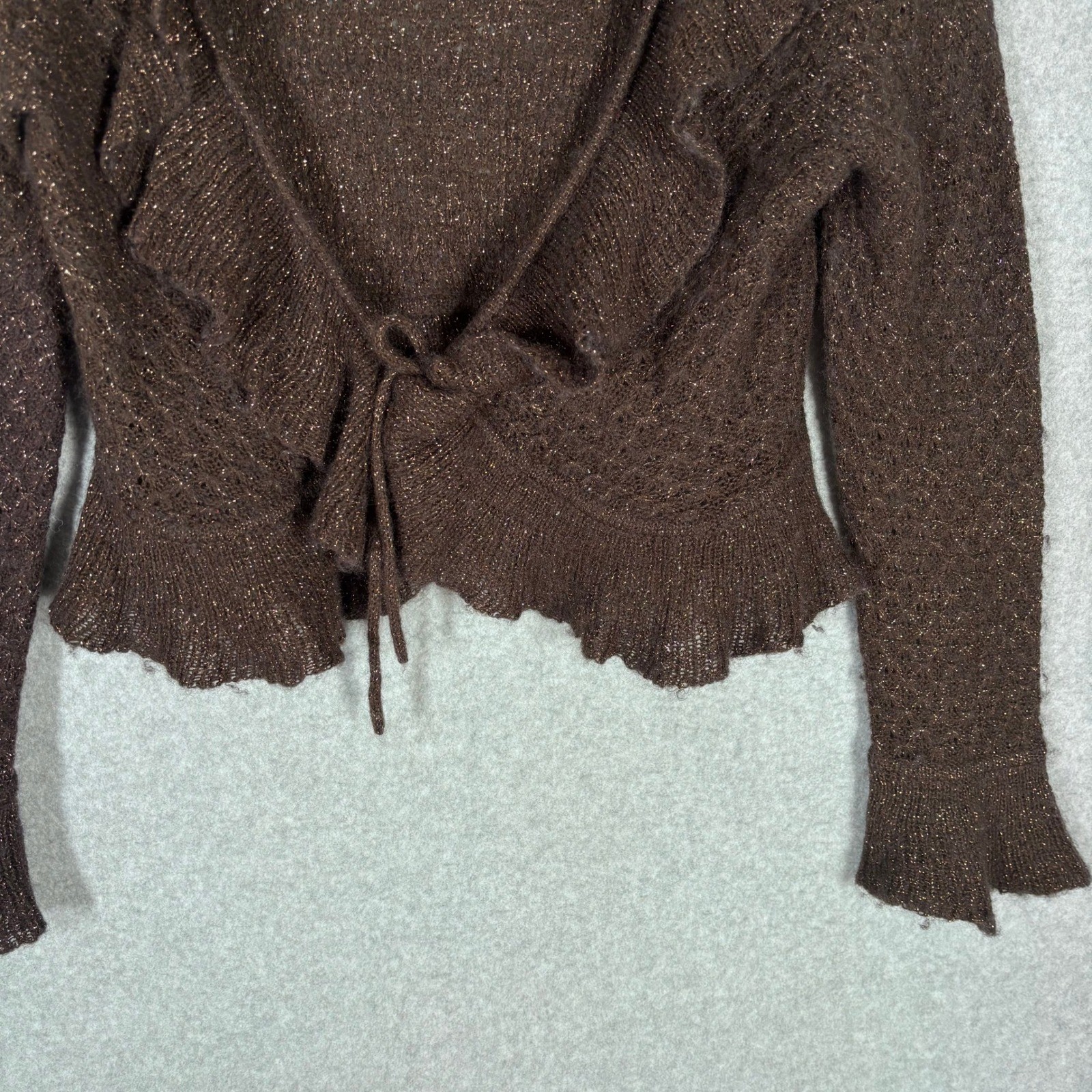 Fairy Crochet Ruffle Cardigan Sweater Large Sparkle Metallic Whimsigoth Grunge Brown Coquette Western Cowgirl Rodeo Tie Front Wool Gold Festival Whimsical Quirky Feminine Romantic Mediterranean Boho Bohemian Hippie Cottage Apt 9 EXCELLENT Pre-owned condition: minimal to no signs of wear, no stains or holes **Please see all pictures for full item condition and details** - Ships Same/Next Day, Professional Seller, Offers Welcome, Like or watch for price drops - Item in photos is exact item you will receive - I list new items daily, be sure to browse my store/closet for more items - Bundle pricing and combined shipping available for additional savings - Feel free to send a message