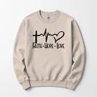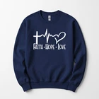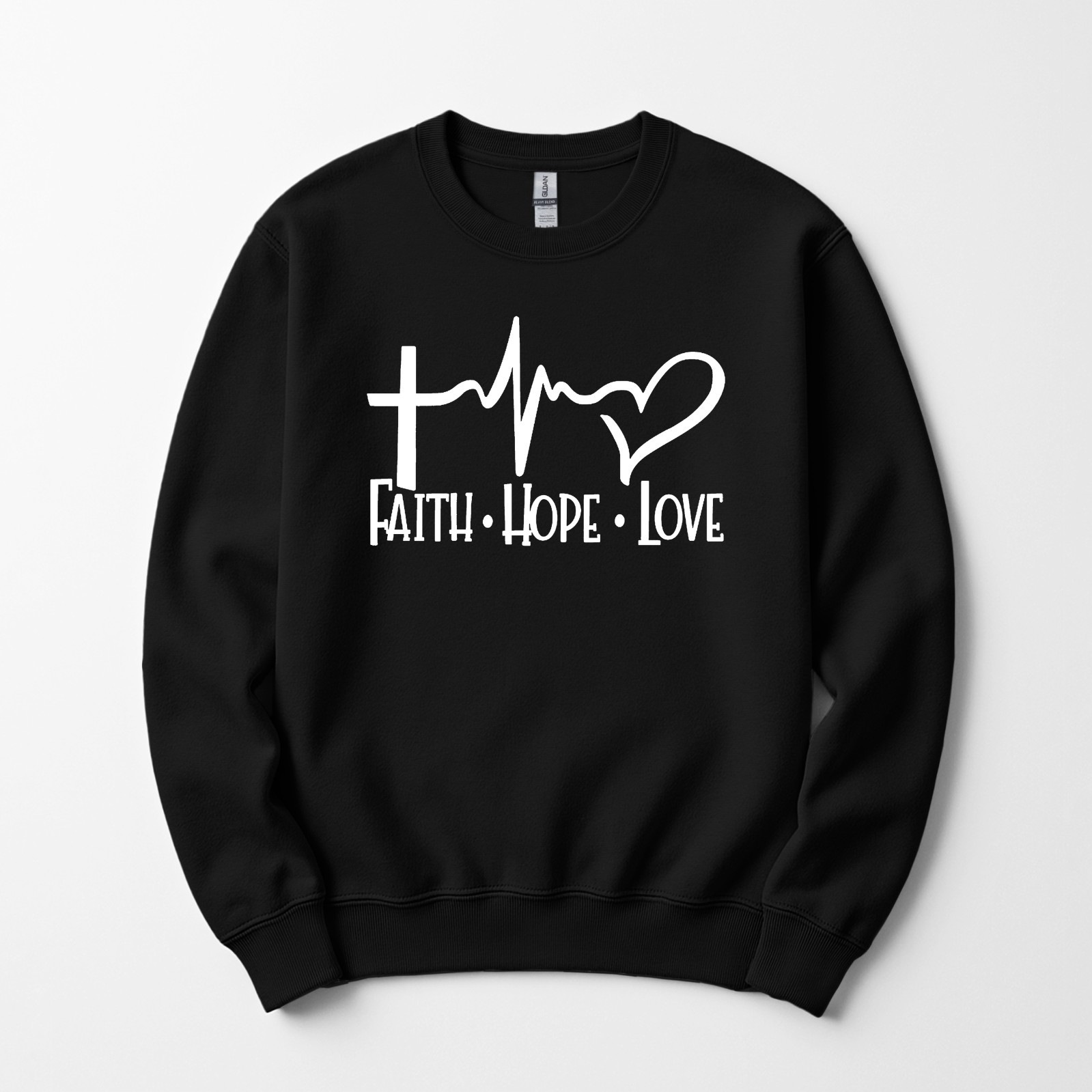 Faith Hope Love Heartbeat Sweatshirt SIZE Runs True To Size Please Refer To The Size Guide In The Pictures FEATURES 50% cotton and 50% polyester Goes with any outfit Please pick size and color. Thanks so much for looking!