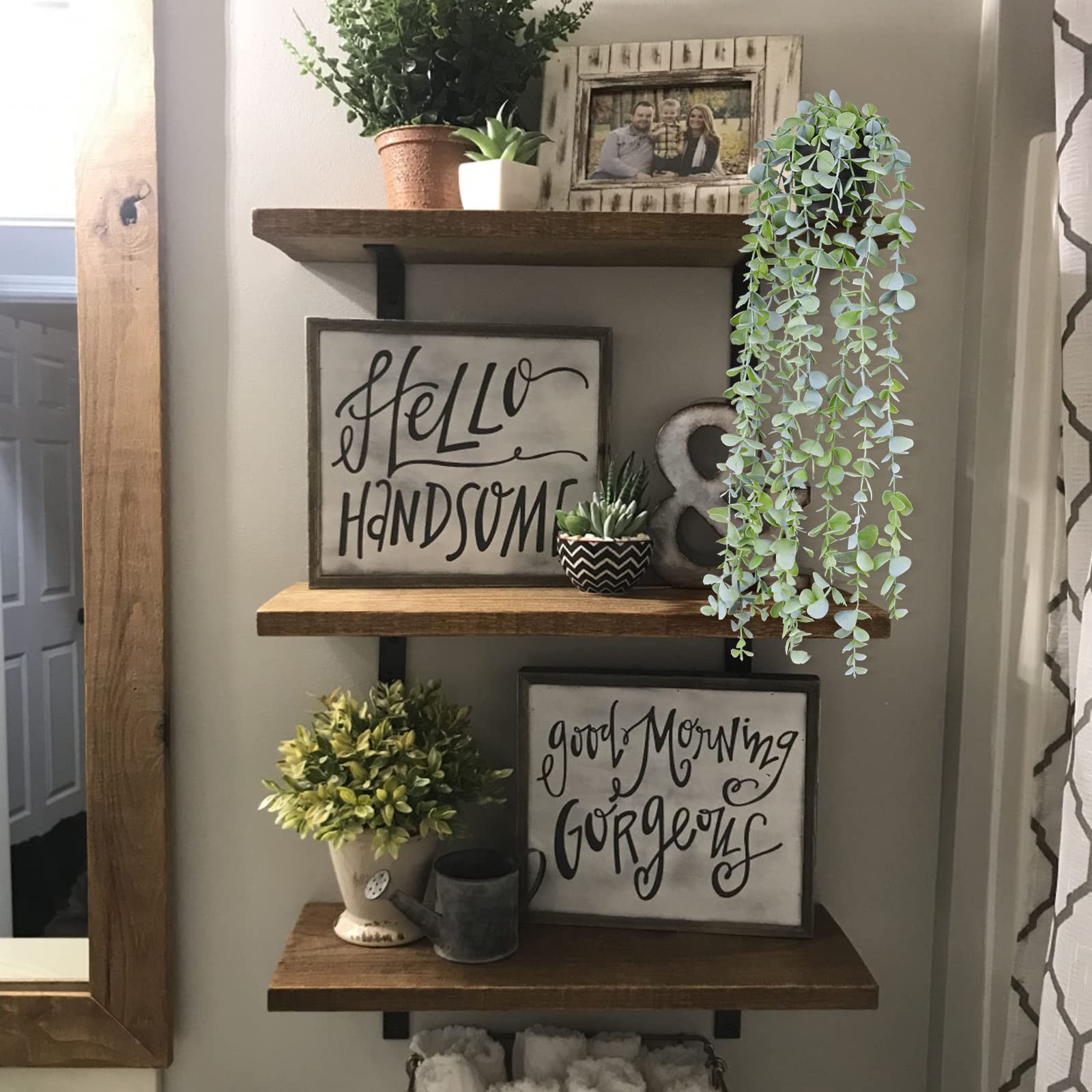 【Realistic Design】Displaying trailing eucalyptus in black pot hanging decor, realistic & lifelike design, mini sized and space saved. 【High Quality】Artificial leaves are made with high quality and safe durable plastic material. The leaves have different tones and sizes making it look very realistic. 【Decent Size】The whole hangings vine approx 23.6Inches/60CM long (but you could vary it shorter or longer), comes with 9x artificial plastic eucalyptus vine leaves trails. The size of the flower pot is 6.5*8CM.The weight of each plant with pot is 300g. 【More Uses】You can hang on the wall, shelf, coffee table, dresser, or nightstandand anywhere as you like to enjoy with our faux hanging potted plants. 【】If you have any question during the use, please do not hesitate to contact us, we will help you solve the problem with 100% satisfaction.