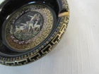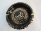 ESTATE LIQUIDATION -------------Fakiolas Ceramics Round Ashtray Handmade In Greece Black With 24k Gold Trim-- no chips, cracks or dings .. see all pics for exact size and condition .........