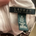 This beautiful Lauren Ralph Lauren skirt features a stunning green and white leaf design, perfect for a casual occasion. The skirt is made from a lightweight cotton and cotton blend fabric with an asymmetric hemline and stretch for added comfort. It has a button closure and knee-length mini style, making it a versatile addition to any wardrobe. The skirt is machine washable and suitable for winter, fall, and spring seasons. It is a regular size 10 and has no vintage or personalized features. The skirt is perfect for anyone looking for a modern and American-themed skirt that is both stylish and comfortable.
