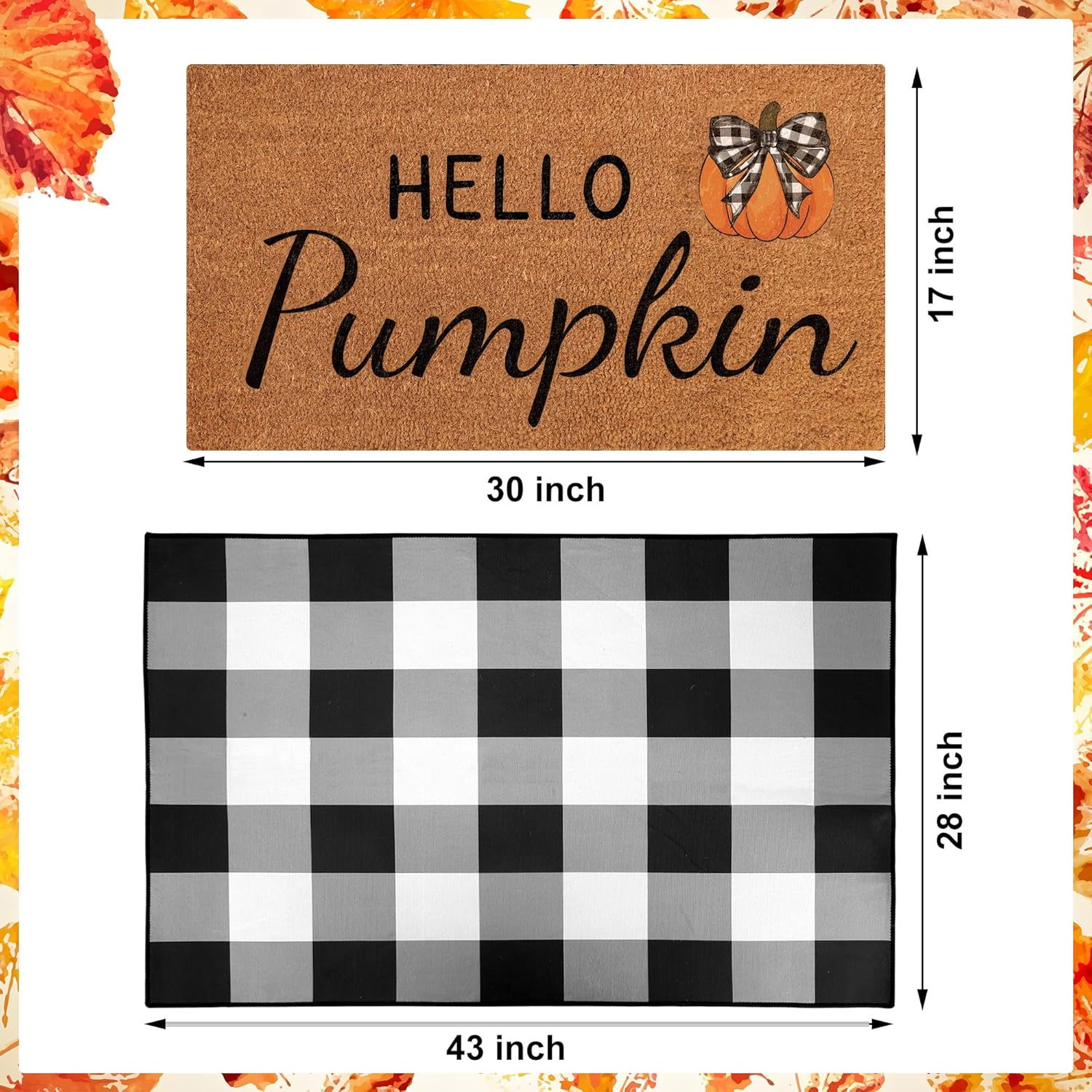 Business is our speciality NEW Fall Decor Door Mat Combo Set Hello Pumpkin 100% Coco Coir Welcome Mat 28X43In Black White Buffalo Plaid Rug Fall Thanksgiving Floor Entryway Doormat for Indoor Outdoor Front Porch Entryway Decor FEATURES What you will get: this set includes 1 piece of black and white buffalo plaid door mat and 1 piece of hello pumpkin welcome mat, and you can place them together for a layered look or individually in different entrances to make each entrance full of fall atmosphere and welcome your guests. Premium material: the coco coir welcome mat has a 0.6 thick heavy-duty fleece and a sturdy pvc backing, non slip and strong, plus a quality black plaid floor mat, thick and lasting enough to prevent wear and tear on your front doormat, both practical and decorative, can serve you for a long time. Easy maintenance: the hello pumpkin floor mat is quick and easy to clean, simply sweep or wash it for a fresh new look and they can retain its shape after washing, it can effectively scrapes away dust, sand and dirt to keep the floor clean and tidy, perfect for decorating your home in the fall season. Perfect size: the front porch entryway doormats are about 28 x 43 inch/ 70 x 110 cm and 17 x 30 inch/ 42 x 74 cm, perfect size for welcoming guests to your home while keeping your floors clean, the great mat for your indoor and outdoor use, adding a touch of farmhouse charm to any space. Multifunctional fall door mat: the black white buffalo plaid floor mat is perfect for a variety of indoor and outdoor settings, such as bathrooms, dining rooms, living rooms, kitchens, front doors, decks, porches, patios, entrances and more, elevate your fall front porch with these versatile door mats. Product description Item model number Fall Door Mat Is Stain Resistant Yes Style Rustic Product Dimensions 28"L x 43"W Weave Type Braided Indoor/Outdoor Usage Both Color White, Black Pattern Letter Print Material Coir Pile Height Low Pile Item Weight 4.69 pounds Shape Rectangular Size 43 inches x 28 inches Construction Type Machine Made Back Material Type Polyvinyl Chloride Model Name Fall Door Mat Rug Form Type Doormat Product Care Instructions Machine Wash 43.0 "w x 28.0 "w. Weight: 4.69 lb Ask us anyhting Free shipping PAYMENT We accept all payments via Ebay using Credit Cards , PAYPAL , Apple Pay and many others SHIPPING We are always working hard to ensure your package arrives as soon as possible. Please understand that some factors like weather, high postal traffic, and the performance of shipping companies are outside of our control. DELIVERY & RETURN POLICY We offer a 30-Day Return Policy on items in which you are not completely satisfied with. You have the option of a full-refund or an exchange of the item. No returns are available on items shipped outside of the USA.