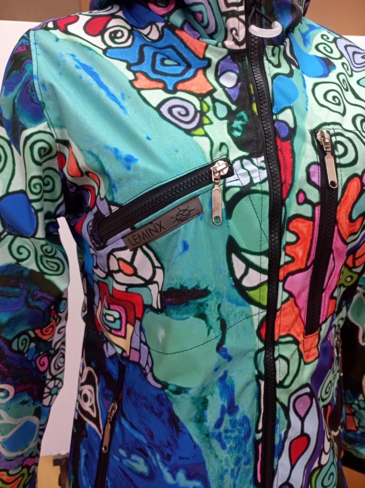 FALL – WINTER – Women’s sport softshell jacket with art pattern JELLY. Waterproof and non-shrinkable fabric. 2x chest zip pockets 2x side zip pockets 1x sleeve pocket 1x inside pocket hooded wrist cuffs Illustrative photo – Art pattern JELLY. Availability: 5-10 days Composition: softshell 100% Polyester lining FALL: fleece 100% Polyester lining WINTER: wadding 100% Polyester WHY LEMINX? - ACTIVE ARTIST SINCE 1999 - FUNCTIONAL CLOTHING - MADE IN SLOVAKIA - PSYCHEDELIC ART - SATISFACTION GUARANTEED
