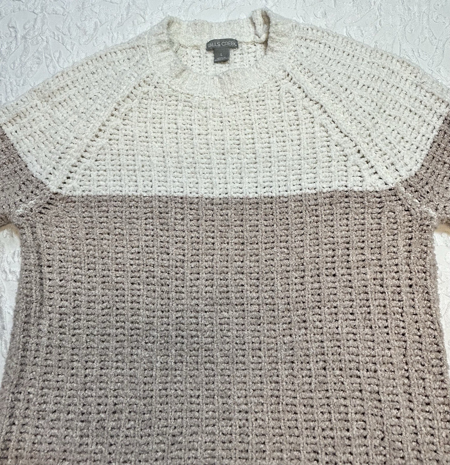 Falls Creek Color Block Earth Tone Cable Knit Tricolor Women’s Large Sweater ! Please see all pictures for measurements and condition! This sweater is in used condition shows normal wear. No stains, snags, or tears. If you have any questions or would like more pictures please feel free to contact us and we will be happy to help with any questions you have about this item. Thank you for visiting FnA Stuff N Stuff!!