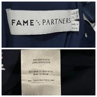 Fame and Partners "Amanda" georgette dress with crisscross back. Deep V neckline. Sleeveless; ruffled straps. A-line silhouette. Lower back zip. Draped ruffle at right. Floor-length hem. Good condition. No known flaws. Hanging straps cut off. Size 8 (approx, on hanger) pit-pit 16” flat waist 15” length 58” Color: blue Tags: wedding guest, formal, party dress, spring, summer, holiday party