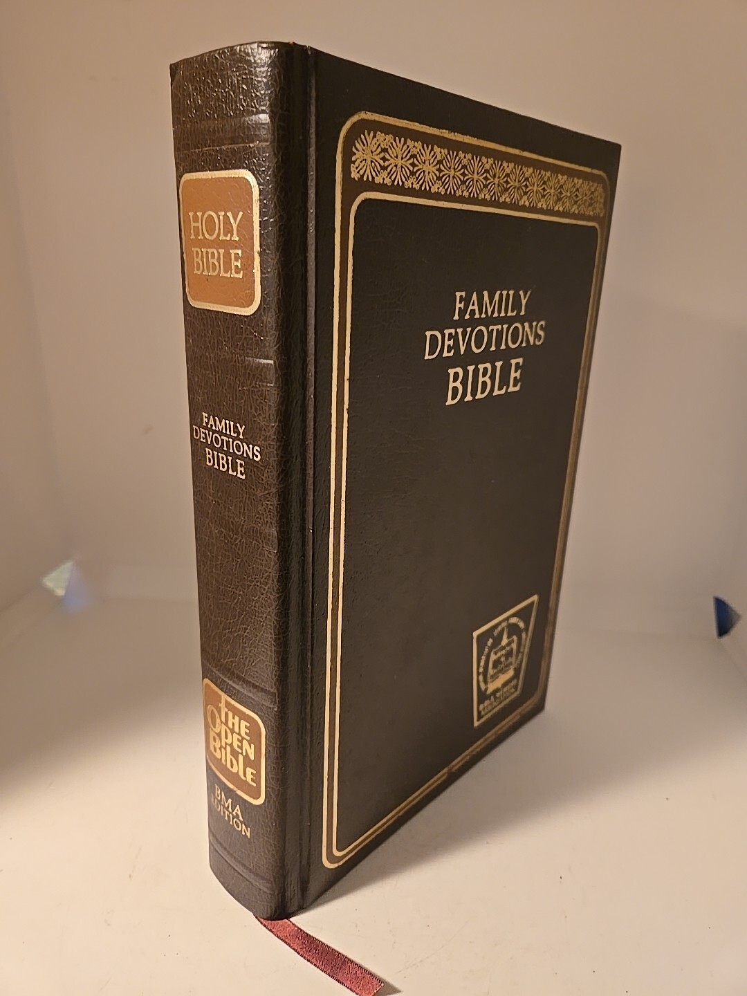 This hardcover book titled "Family Devotions The Open Bible Memory Asso. Hardcover" is a rare find for any book collector. Published by Royal Publishers in 1975, this vintage book features 1776 pages of spirituality, religious history, and the King James Version/Study. The book is in great shape and comes with a leather-bound feature. It measures 9.5 inches in length, 6.5 inches in width, and 1.5 inches in height. The book series is the Bible Memory Association, and the original language is English. This nonfiction book is perfect for anyone interested in devotions, the Bible, Christianity, and spirituality.