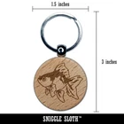 Fancy Pet Goldfish Engraved Wood Round Keychain Tag Charm