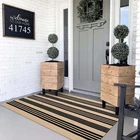 Hand-woven rug of cotton blend, simple, bold and stunning. Black and Khaki stripe pattern creates a strong, visually exciting contrast. Perfect for front door, porch, backyard or use with welcome door mat, also great for high-traffic rooms, entryways, hallways, and in homes with kids and pets. Why Choose Our Fall Outdoor Rug? ✅ Good Material-Made of high quality cotton material to against everyday wear-and-tear, this rug is perfect for high traffic areas of your home such as porch, front door, entry way, living room, dining room, kitchen, backyard, and hallways. ✅ Stylish Design-With its chic narrow stripes and subtle color palette, the black and Khaki stripe rug adds casual, minimalist style to your house. The black and Khaki color palette is elegant and calming, but the striped pattern is eye-catching and cannot be overlooked or ignored by anyone who steps into the room. ✅ Size-This product is available in multiple sizes that you can choose from according to your requirement. ✅ Multifuntional Rug-Makes a perfect floor mat, outdoor rug, porch rug, bedroom rug, kitchen rug, bathroom rug, entryway rug, small area rug, laundry room rug, picnic throw rug, etc. Please Note: No Rubber backing. For best result, use of rug pad recommended. Also makes a perfect combination with welcome doormats. Please allow slight errors due to different measurement methods. Rug colors may vary slightly according to your device and the lighting in your space. Premium Material: Black and khaki fall outdoor rug made by 45% Cotton+45% Polyester+10% viscose, the edges feature special crimping process with high quality cotton thread, crafted for enduring daily use. It is a ideal choice for farmhouse decor or modern decor. Autumn Outdoor Mat: This 3x5 fall porch decor is a great choice for autumn, Halloween, and Thanksgiving decorations. Perfect for your front door, porch, entryway, home entrance, patio, balcony or farmhouse, it adds cozy seasonal charm and welcomes guests with a festive touch! It's great as a Halloween gift. Easy to Clean: This porch fall decor front door mat is machine washable in cold water, gentle cycle. Regular vacuuming and the occasional gentle shake off the dust also can keep your rug in good look. Just Tumble dry on low heat or air dry. Please do not use chlorine or bleach. Layer Under Welcome Doormat: Our fall rugs outdoor entrance fit the welcome doormat to form a double-layer front door mat, adding a different brilliance to your porch! The meticulously woven construction boasts durability, and its trendy look stands out, bringing unique charm into your decor space. Classic Stripe Pattern: Black and khaki colors will not be out of date. A suited way to spruce up your indoor and outdoor setting, this outside door mats features eye-catching black and khaki stripes for a modern and welcoming look that ties any space together. Note: This outside door mats for front door lacks a non slip backing, so we recommend that use a a non slip rug pad or adhensive grips for better grip and safety.