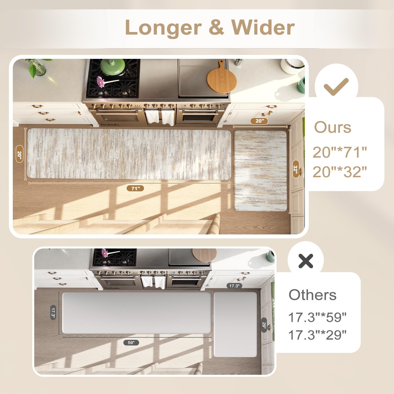 kitchen mats are made by superior quality PVC material,with non-slip rubber backing which ensures a safety using. The anti-fatigue kitchen floor mats provide the ultimate comfort to your feet, saving your back and legs. Make cleaning more convenient,when your kitchen rugs are stained,you just need a wet cloth to wipe out down! Spills are wiped off nicely. Slow-rebound feature protect your fragile porcelain. Thickness:0.47 inch (12mm) Surface:High quality durable waterproof material Backing:Non-slip rubber backing Style:Farmhouse boho style kitchen rug with flower pattern Easy to clean:Simply wipe clean with a damp cloth or sponge, use any common household cleaner or sweep clean of dirt and dust,save your time and energy. Widely Use:Kitchen sink mat,doormat,bedroom rug,soft bathroom mat,kitchen runner decor,kitchen floor mat,anti fatigue mat,kitchen accessories,comfort mat for kitchen floor,kitchen sets for home,heated floor mat under desk,commercial hallway rug,or other anti-fatigue mat application. Wider & Longer Kitchen Rugs 2PC:The set contains 2 rectangular kitchen mats measure 20"x71"+20"x32" which are wider than ordinary kitchen mats on the market.The mats are made of premium materials, which are friendly to your kids and pets Anti-fatigue Kitchen Mats:Cushioned kitchen mats for floor are constructed with 0.47 inch (12 mm) thick, and long-lasting memory foam center provides the comfort for your feet, back and legs,which can support you while cooking Anti-Slip Standing Mats:Equipped with a non slip rubber bottom so that the mats stay in place both on hard or carpet floors.The beveled edges of the kitchen mats help prevent tripping,fully protect you and your family's safety.Tip:Should be placed on dry surface during use Easy Clean & Waterproof:The anti fatigue mats for kitchen floor are stain resistant,waterproof and easily cleaned.Simply wipe the floor mat with a damp cloth or sponge or use a hand-held vacuum as needed,save your time and energy Versatile: Abstract farmhouse style kitchen rug,easily to match your kitchen decor,bright your home.Soft thick foam provides ample support for standing in kitchen sink,laundry room, office,bathroom,dinning room,or any other high-traffic area