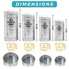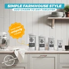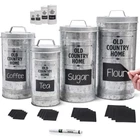 Canister Set for Kitchen: Designed by our family-owned brand, this built-to-last set of 4 creates a charming rustic look on any counter. Using premium food safe metal, our farmhouse canisters sets for the kitchen is ideal as sugar flour canisters for the kitchen counter. Keep Food Fresh: Airtight silicone seals on our farmhouse kitchen canister set keep sugar, flour, rice or other food items fresh. Ideal as a sugar flour canisters for kitchen counter the lids stay on tight but remove easily, all while locking in freshness. Keep your ingredients fresher for longer! Make Them Yours: 4 labels for each canister size & white chalkboard marker included. Personalize to reflect a wide variety of contents. 16 labels arrive ready to apply to canisters and are easily removed once applied. Well Packaged: Your farmhouse kitchen canisters arrive well packaged in a pretty gift-ready presentation box, unlike many other sets that only feature a plain cardboard box. *Patent Pending Product Hold Up to 37 Cups: With wide mouth openings, easily refill your coffee tea sugar container set up to a combined 37 cups of dry ingredients across all 4 kitchen canisters. Hand wash only.