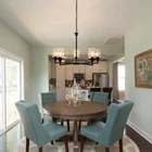 Farmhouse Chandelier Cylinder Clear Glass Vintage Black 5-Light Pendant Lamps About this item 【Farmhouse & Industrial Design】Dining room light fixture use durable black metal body and 5 Lights E26 base, offers enough lights for your home, reflecting a unique modern style. The angle-adjustable base of this black chandelier can be installed on a sloping ceiling. 【Farmhouse Light Fixtures Size】The diameter of this farmhouse chandelier is 25.5 inches, 35.3" in height after installation. The hanging chain of this farmhouse chandelier is about 23.6", can be adjusted. Center boom 15.7" . Using this farmhouse chandeliers for dining room creates warm vintage relaxing atmosphere. 【Bulb Requirements】Black dining room light fixture needs 5 * E26 base bulbs(Bulbs NOT Included). It is also dimmable when you use the dimmer switch and dimmable bulbs.(Switch Not Included). 【Wide Application】This dining room light fixtures over table is suitable for the kitchen island, dining room, bedroom, living room, rustic home,office, workshop,etc. Dining room chandelier over table is easy install, please follow the installation instruction and finish this beautiful black farmhouse chandelier. 【Our Service】After you receive the dining room light, if the foyer lighting fixtures is damaged or has other quality problems, you can contact us at any time, and we will give you a satisfactory answer within 24 hours. Specification Material: Glass, Metal Voltage: 110V Color: Black Mounting Type: Ceiling Number of Lampheads: 5 Bulb Requirements: Use E26 Bulbs, Maximum 40watts, Options Include Incandescent, Fluorescent, LED, Halogen, etc. (Bulbs Are Not Included) Packaging details 1 * light pack in foam carton box.(Neen assembly) Suggestion: Installation By A PROFESSIONAL ELECTRICIAN Assistant after sales: For any question or installation methords about the light fixture,pls contact us via ebay message firstly for help. Payment Delivery details Terms of sales About us Contact us Payment You could make payment via: Delivery details Packages will ship via by UPS or USPS within our handling time,once the package is shipped out ,normally shipping takes about 3-10 working days,but due to different cities and states,shipping time will be different. Terms of sales If you any problem about shipping information, or the item you got : Arrived damaged; Wrong item sent; Missing parts or pieces; Doesn't work or defective; Doesn't match description or photos. Pls click "Contact Seller" and send us message firstly. Then we could have a check and will take responsibility to resolve the problem with you in good communication. About us Our company specializing in selling all kinds of light fixtures,such as ceiling fans,chandeliers,crystal lights,retro lamps,pendant light,etc. If there's any light fixture you are interested,pls feel free to contact us for more details. Contact us Normally your message will be replied in 1 business day,If after 24 hours you do not receive our reply,please kindly re-send us the message,because sometimes ebay message system will have technical problem,so your message can't send to us successfully.