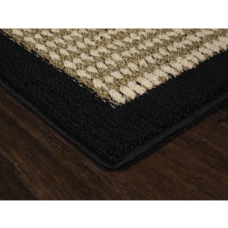 Add style and functionality to your home with the Mainstays Traditional Faux Sisal Border Area Rug or Runner Rug. There are five border color options which include Gray, Beige, Brown, Red and Black. With multiple size options, it's a breeze to find the perfect rug for your space whether it be a living room, bedroom, dining room, kitchen, or home office. Quality crafted of 100% olefin yarn, this rug will stand up in even the heaviest of traffic areas with its stain and fade resistance. The Mainstays Faux Sisal Rug Collection features non-skid latex backing on all sizes to help keep the rug in place on your floors. Multiple size and color options are available to purchase individually or in 3-Piece Rug Sets. 100 Percent Olefin Yarn High Low Loop Tufted Construction Skid-Resistant Latex Backing Rug Size is 2' x 6' or 24 inch x 72 inch 0.44 Inch Pile Height Black Border Colorway Machine Washable Stain and Fade Resistant Indoor Use Tufted in the USA Mainstays Brand