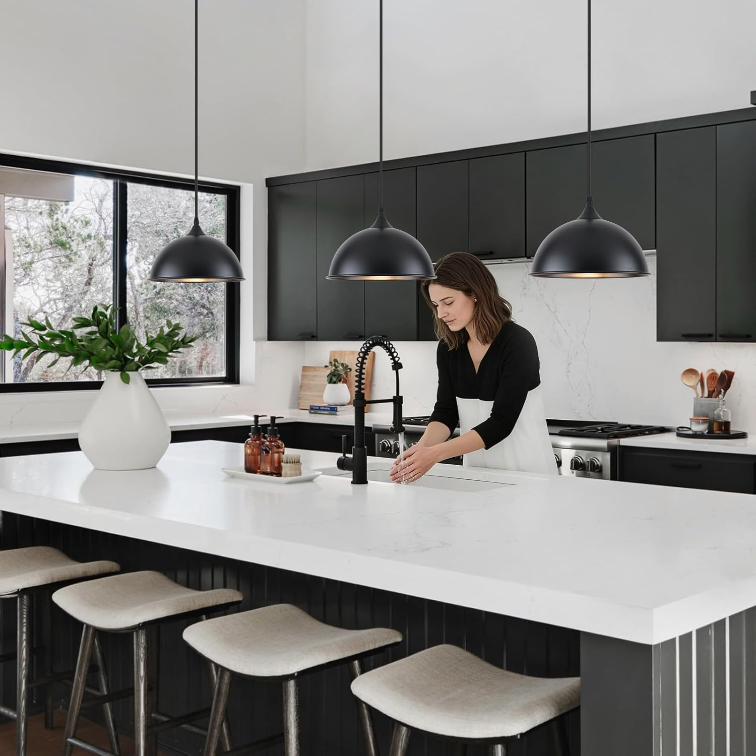 Store New Arrivals Add to Favorite View Feedback Contact Farmhouse Matte Black Pendant Lights 3-Pack for Kitchen & Dining Room Description Light Source Type Incandescent Item model number L-vin16-jb-b1-3p Style Farmhouse Number of Items 3 Power Source Corded Electric Number of Light Sources 3 Embellishment Adjustable Height Theme Farmhouse, Industrial, Minimalist Batteries Included? No Lighting Method Downlight Indoor/Outdoor Usage Indoor Unit Count 3.0 Count Room Type Bedroom, Dining Room, Kitchen, Living Room Assembly Required Yes Material Metal Installation Type Flush Mount Light Output Maximum 800 Lumens Model Name Pendant Light Finish Type Matte Black Specific Uses For Product Indoor Lighting Included Components Mounting Hardware Fixture Type Non Removable Brightness 800 Lumen Set Name 3 Pack Light Color warm white Water Resistance Level Not Water Resistant Batteries Required? No Item Weight 4.4 pounds Light fixture form Pendant Special Features Adjustable Height Special Feature Adjustable Height Base Color Black Part Number L-vin16-jb-b1-3p Shade Color Matte Black Mounting Type Ceiling Mount Color Black+Black Wattage 60 watts Bulb Base E26 Shape Dome Voltage 110 Volts Recommended Uses For Product Install in indoor dry areas, suitable for living room; bedroom; kitchen; dining room; office Shade Material Metal Finish types Matte Black Product Dimensions 9.8"L x 9.8"W x 6.7"H Size 9.8in-3 Packs Industrial and Farmhouse Style: This pendant light kitchen island features a sturdy dome lampshade design, with a fully black (inner and outer black) metal structure that adds a strong industrial atmosphere to your space. When you turn on warm lights, the black interior makes your light appear even warmer, making it not only a light fixture, but also a decorative piece that adds art to your space. Wide application: Black pendant lights are the ideal choice for any home. This pendant light is simple yet not monotonous, blending with various decorative styles to provide you with unlimited decorative imagination. When placing 2 or 3 sets on your kitchen island, dining room, hallway, or living room, our black pendant lights are definitely the focus. Adjustable Height: This farmhouse pendant lights kitchen island shade is about 9.8 inches W, 6.7 inches H, and the max length of the hanging lamp wire is about 59 inches, Customize the hanging length to suit your space, ensuring optimal lighting levels and a seamless integration with your existing decor. It can be applied to the sloped /flat ceiling for your space needs. Bulb Requirement: This kitchen pendant lighting supports any LED/CFL/ or other E26 basic filament bulb (MAX 60W). It can be dimmed with a dimmable bulb and dimmer switch so you can adjust the brightness as needed. (Bulb or dimmer not included). Easy Installation & After-sale: Our industrial kitchen island light fixtures comes with all the necessary mounting hardware, making installation a breeze. Additionally, we stand by the quality of our product and offer 12 months assurance refund for quality. If you encounter any issues, don't hesitate to contact us – we're here to help. Product description LWWHQ Black Pendant Light, Light up your home. The all black pendant light brings a unique space decoration, making you stand out even more. pendant light fixture Specification Industrial pendant lights kitchen island Color:Black Number of Lights: 2 Pack ( Bulbs not included) Voltage: 110-120V Power: Max of one bulb is 60W Light Fixture: 10.2" L x 10.2" W x 9.8" H Adjustable Cord: 59.05" Max Inner Coat Finished: Black Wide Application Black pendant lights are the main choice for most decorations. They can adapt to different styles, suitable for modern, retro, and minimalist styles, and can reflect a sense of fashion. They are the darling of modern and industrial styles and can be matched with various colors and materials to create a cool and fashionable space atmosphere. The black semi-circular lampshade is made of high-quality metal and paired with warm lighting to create a cozy and comfortable environment, suitable for kitchen islands, dining rooms, bedrooms, corridors, barns, and more. Modern farmhouse pendant light, giving you endless imagination of decor space, making you love life even more! ABOUT US We’re committed to offering great deals on quality products you can trust. From home décor and garden essentials to tools, hardware, and pet accessories, there’s something for everyone at prices you’ll love. SHIPPING Orders ship directly from the USA for fast and reliable delivery. Most items ship within 1 business day and include free shipping to the lower 48 states. International orders are fulfilled through eBay’s Global Shipping Program. Simply proceed to checkout to view shipping costs, duties, and taxes for your country. FREE RETURNS We offer a 30-day return policy on items you are not completely satisfied with. You may choose a full refund or an exchange.. CUSTOMER SATISFACTION We do everything we can to ensure every customer is fully satisfied. If something is not right, send us a message and we will take care of it quickly.