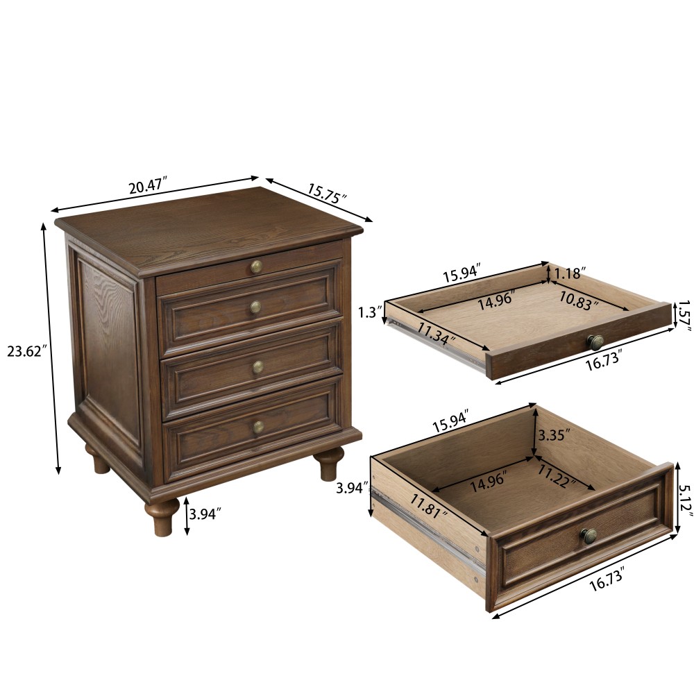 Farmhouse Nightstands Set of 2 - 4 Drawer Wood Storage End Table with Hidden Pull-Out Shelf, Walnut Brown Elevate your bedroom, living room, or any space with this stylish and functional set of 2 farmhouse nightstands, designed to blend vintage charm with modern practicality. Finished in a rich walnut brown, these nightstands feature 4 drawers, a hidden pull-out shelf, solid wood feet, and metal handles—offering ample storage, versatile use, and a rustic, cozy ambiance that complements any farmhouse, modern, or rustic-modern decor. Timeless Vintage Charm & Modern Functionality. Seamlessly merging timeless aesthetics with contemporary convenience, these nightstands bring a warm, rustic vibe to your bedroom while delivering practical storage solutions. Crafted to preserve the natural texture of ash wood—known for its durability, beautiful grain, and resilience—they infuse your home with a serene, natural ambiance that feels both cozy and refined. Ash wood is prized for its strength, density, and ability to hold finishes beautifully, making it a premium choice for long-lasting furniture. Clever Hidden Pull-Out Shelf. Designed with versatility in mind, each nightstand features a hidden pull-out shelf that adds an extra layer of functionality. Whether you need a convenient spot for your morning coffee, a place to rest your tablet or book, or a surface for quick work tasks, this pull-out tray effortlessly accommodates all your needs—keeping essentials within arm’s reach without cluttering the tabletop. Ample Storage Space for Everyday Essentials. With a spacious 20-inch tabletop and 4 roomy drawers, these nightstands provide plenty of storage to keep your bedroom organized. Store books, electronics, jewelry, bedtime essentials, and more in the generous drawers, while the tabletop offers space for lamps, photo frames, or decorative accents—ensuring everything you need is close at hand. Sturdy, Durable Construction. Built to last, these nightstands are crafted from high-quality materials, including pine wood, ash wood, MDF, and metal—combining exceptional craftsmanship with long-lasting durability. The 1-inch thick tabletop supports up to 132 lbs, making it sturdy enough for lamps, decor, or even small electronics. The pull-out tray holds up to 22 lbs, and each drawer supports 44 lbs, ensuring reliable storage for your items. Four sturdy, rounded gourd-shaped solid wood feet provide exceptional stability, preventing wobbling and ensuring these nightstands remain a reliable addition to your home for years. Versatile Multi-Use Design. These nightstands aren’t just for bedrooms—they’re a versatile addition to any space in your home. Use them as side tables in the living room, hallway accent tables, office storage tables, or even toy storage cabinets in nurseries. Their clean, modern farmhouse design adds a touch of elegance to any room, making them a functional and stylish solution for all your storage needs. Hassle-Free Assembly. Assembly is quick and straightforward, thanks to clear, step-by-step instructions and all necessary hardware included in the package. Sequential numbers on the assembly panels ensure you can easily follow along, getting your nightstands set up in no time—no additional tools required. Perfect Size & Secure Shipping. Each assembled nightstand measures 23.62”L × 15.75”W × 20.47”H, and the set weighs 70.55 lbs total—compact enough for most spaces, yet spacious enough for ample storage. The set ships in one secure package with dimensions of 26.38”L × 19.09”W × 19.29”H and a package weight of 80.47 lbs. All components are carefully packed with protective materials to prevent transit damage, ensuring your nightstands arrive in perfect condition. Care & Important Notes - Care Instructions: Clean the nightstands with a damp cloth and dry immediately to preserve the walnut brown finish and prevent water damage. Avoid harsh chemicals or abrasive materials that may scratch or dull the surface. - Assembly Note: Before installation, lay the foam board included in the packaging on the floor or assemble the product on a carpet to prevent soiling or scratching the nightstands. - Color Variation: Due to lighting, monitor display, or different ambient lighting conditions, the actual color of the product may differ slightly from the images. This is normal and not a defect. - Size Variation: Manual measurement was used, so there may be some reasonable error between the actual product and the listed dimensions. Measurement data is for reference only. - Safety Note: Ensure all components are properly assembled and secured before use. Do not exceed the recommended weight capacities (132 lbs for the tabletop, 22 lbs for the tray, 44 lbs per drawer) to maintain stability. Product Details - Color: Walnut Brown; Material: Pine Wood + Ash Wood + MDF + Metal; Product Type: Farmhouse Nightstands (Set of 2); Wood Type: Ash; Number of Drawers: 4. - Assembled Dimensions (per nightstand): 23.62”L × 15.75”W × 20.47”H; Total Product Weight: 70.55 LBS; Number of Pieces: 2. - Weight Capacity: Tabletop: 132 LBS; Pull-Out Tray: 22 LBS; Each Drawer: 44 LBS. - Package Dimensions: 26.38”L × 19.09”W × 19.29”; Package Weight: 80.47 LBS; Number of Packages: 1. - Key Features: Set of 2 Nightstands, 4 Drawers, Hidden Pull-Out Shelf, Solid Wood Feet, Metal Handles, Walnut Brown Finish, Farmhouse Style, Ample Storage, Sturdy Construction, Easy Assembly, All Tools Included, Versatile Multi-Use. - Package Includes: 2 × Farmhouse Nightstands (All Components), All Necessary Hardware, Detailed Step-by-Step Assembly Instructions, Foam Board for Assembly Protection. - Applicable Scenario: Bedroom, Living Room, Hallway, Office, Nursery; perfect as nightstands, side tables, end tables, or storage cabinets. Warranty & Return Policy This Set of 2 Farmhouse Nightstands (Walnut Brown) is backed by a 1-year warranty against manufacturing defects, ensuring reliable durability and 