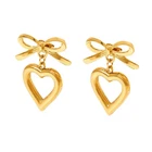 Features: Hollow Heart bowknot pendant features a unique designs that showcases the combination of fashion and romance. Made from alloy materials, it has antiallergics properties, is lightweight and comfortable, not easy to fade, and is comfortable to wear. Suitable for women who enjoy sweet styles, it can showcases charm in daily wear, parties, dates, and other occasions. Can be paired with various clothing, such as dresses, T-shirts, suitable for daily life, gatherings, vacations and other occasions, adding highlight to the overall Giving these earrings as a to family, friend, or partners is both meaningful and showcases your care. Specifications: Alloy Color: Gold/Silver Size: As shown in the picture Package Includes: 1pair Earrings note: Please allow 1-2cm errors due to manual measurement, make surely that you not mind before order. Due to difference between different monitors, the picture may not reflect the actual color.