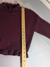 Fashion Nova sweater in burgundy is a stylish addition to any wardrobe. It features a ruffle hem, ribbing, and a cropped style. Moody , dark academic, soft goth, whimsygoth, romantic goth, coquette .