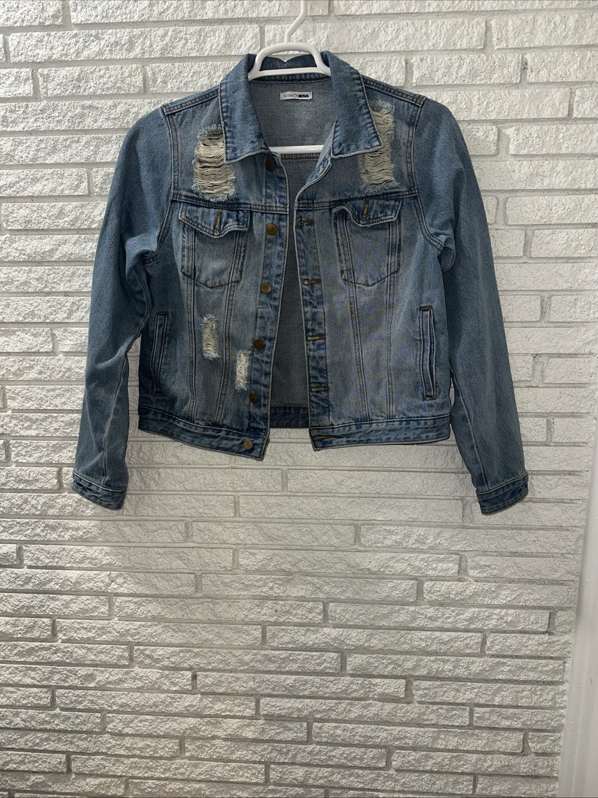 The Fashion Nova Women's Blue Ripped Look Cropped Denim Jacket is a stylish and trendy outerwear piece designed for women. Made from a comfortable cotton blend denim fabric, this jacket features a button front closure and a cropped style that adds a modern touch. The distressed blue color and ripped look give it a chic and edgy vibe, perfect for casual or trendy outfits. The regular sizing and large size make it a versatile option for women looking to elevate their wardrobe with a fashionable statement piece.