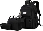 Made of high-quality waterproof polyester material, brand smooth and durable zipper and durable nylon lining. Zippered main compartment opens wide and flat for quick access to your gear. This backpack is durable and fashion. Organize study items or weekend accessories in this convenient backpack. One large main compartment offers ample room to fit clothes, towels, a laptop or books while three front utility pockets provides space for items such as pens, keys, pencils, and phone chargers. And two side pockets for a bottle, umbrella, or other items. Adjustable shoulder straps with mesh cushioning and fully padded back panel for personalized comfort. Laptop Sleeve with padded and Hook&Loop keep Laptop more safety. Backpack size:13.4*6*17.3 inches (Length*width*height), weight:1.3LB. Lunch Bag: 10.5"x7.5"x7.7"(L*D*H). Purse: 8.8"x4.3"(L*H). Interior laptop sleeve offers secure storage designed to fit most 15.6’’ laptops. Featuring a pure color and simple design, this student backpack adds classic style to your everyday look. This backpack is very suit for school routine, daily use or short trip.