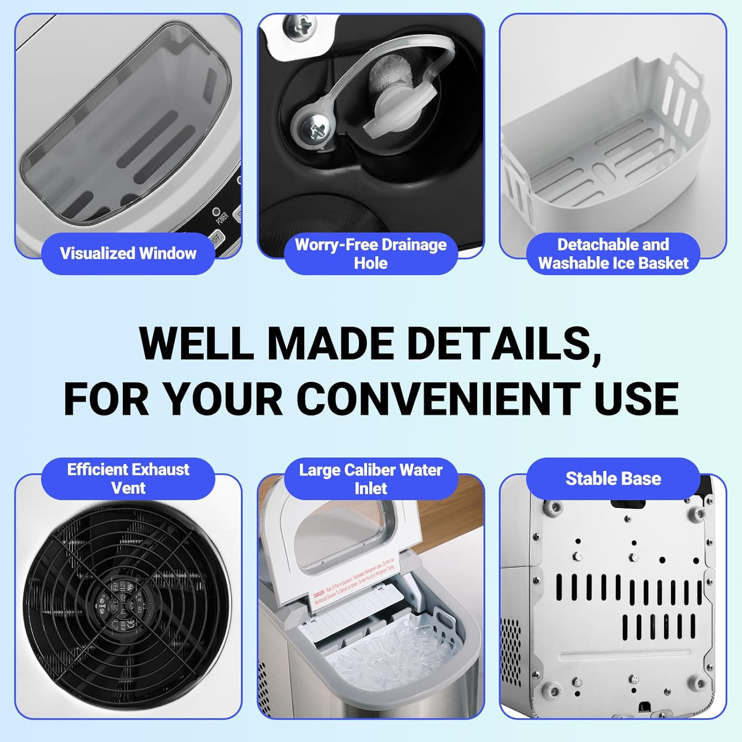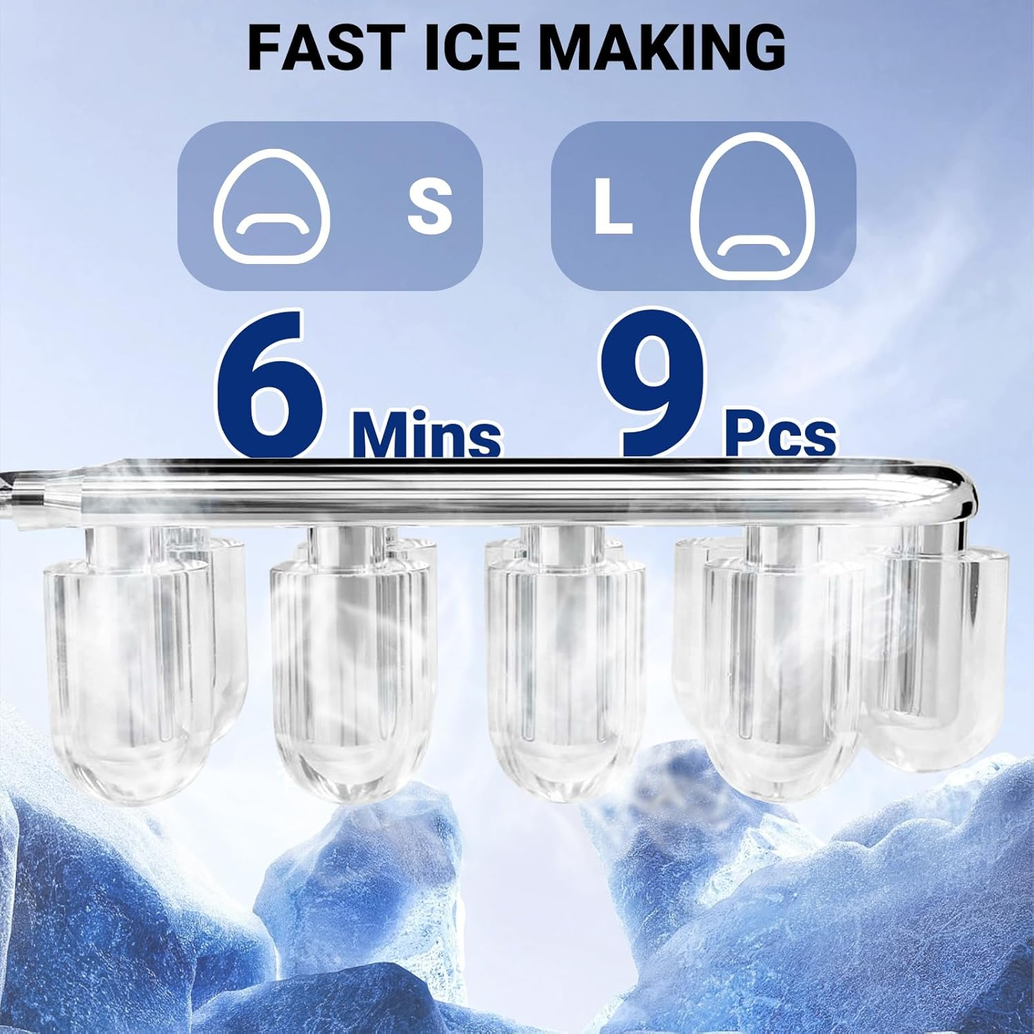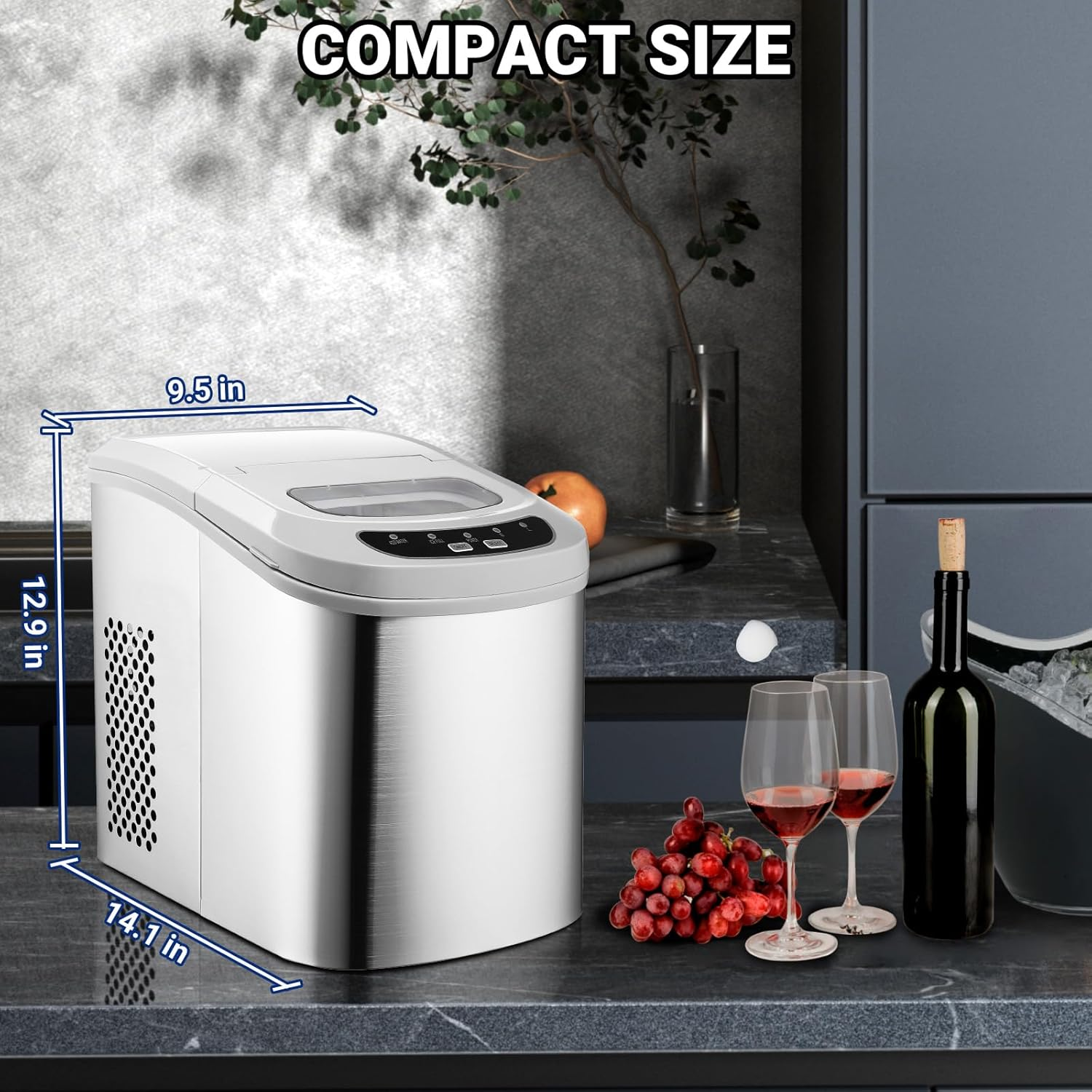 Store New Arrivals Add to Favorite View Feedback Contact Ice Makers Countertop,9 Ice Ready in 6 Mins,26Lbs/24H,Ice Machine Maker Countertop,Portable Ice Maker Countertop with Scoop & Basket,2 Sizes of Bullet Ice for Home Kitchen Bar Camping RV Description Item model number FBA-DIM-26SN(A) Capacity 2.2 Liters Number of Items 1 Color Silver(Stainless Steel) Wattage 110 watts Country of Origin China Model Name Ice Maker Product Dimensions 14.8"D x 11"W x 14.7"H Size 26 lbs Fast Ice Maker: The Smad ice maker only takes 6 minutes to make 9 bullet-shaped ice cubes. Fill 2.2 L of water into the water tank, maximum ice capacity can reach 26 pounds in 24 hours Two Sizes of Ice Cubes: You can make 2 different sizes of ice cubes. Small ice cubes can chill seafood and beer keeping it fresh and cold. Large ice cubes are more suitable for beverages to achieve a rapid cooling effect Quiet and User Friendly: When making ice cubes, the noise is lower than 43 dB. The transparent lid allows you to monitor the ice capacity. The sensor automatically detects when ice is full and stops producing to prevent overflowing Esay to Control: The control panel is very easy to operate. Fill the ice maker with water, press the ON button, select the size of the ice cubes and that’s it. When the water is insufficient or the ice basket is full, the indicator light will turn on Portable Ice Maker with Ice Scoop& Basket: Smad ice maker is compact with dimensions(W*D*H) of 9.5 x 14.1 x 12.9 inches.This ice cube maker comes with an ice scoop and a removable ice basket in the package. Perfect for home kitchen bar camping RV use Note : Please check the dimension and item weight of the product and confirm it fits your space. As distributors of the [Smad Electric Appliance], we will spare no effort to serve you. Product Description 1 CONTROL PANNEL 2 HOW TO USE 3 SMART REMINDER 4 LOW NOISE ICE MAKER COLLECTION Ice Shape;Ice Size Bullet; Small/Big Ice Shape;Ice Size Bullet; Small/Big Ice Shape;Ice Size Bullet; Small/Big Ice Capacity(Kg/24Hr) 26 LBS Ice Capacity(Kg/24Hr) 26 LBS Ice Capacity(Kg/24Hr) 26 LBS Ice Cubes Qty per Cycle 9 Ice Cubes Qty per Cycle 9 Ice Cubes Qty per Cycle 9 Water Tank Capacity 2.2 L Water Tank Capacity 1.2 L Water Tank Capacity 2.2 L Ice Collection Capacity 1.54 LBS Ice Collection capacity 1.32 LBS Ice Collection capacity 1.54 LBS ABOUT US We offer the best prices around on high quality products. Our E-store includes media such as books, movies, music and games while offering electronics, toys, sporting apparel, clothing, tools, general home, garden items and more. SHIPPING We are always working hard to ensure your package arrives as soon as possible. Please understand that some factors like weather, high postal traffic, and the performance of shipping companies are outside of our control. We offer free shipping to the lower 48 states and ship within 2 business days of payment, usually sooner. We do not accept P.O. Boxes. Please provide a physical address. For shipping outside of the continental USA, we only use eBay's Global Shipping Program.The item is shipped to KY and then sent to the rest of the world. International customers are responsible for all duties and taxes. Continue to check out in order to calculate costs for shipping the item to your country. Messages regarding eBay's Global Shipping Program MUST be directed at eBay EXCLUSIVELY. RETURNS We offer a 30-Day Return Policy on items which you are not completely satisfied with. You have the option for a full-refund or an exchange of the item. No returns are available on items shipped outside of the USA. PAYMENT We accept PayPal. CONTACT US This page content is yet to come Please ad us to your favorite seller and visit again later Thank You CUSTOMER SATISFACTION We try our very best to make sure every customer is completely satisfied. If there's a problem, message us! We're happy to help.