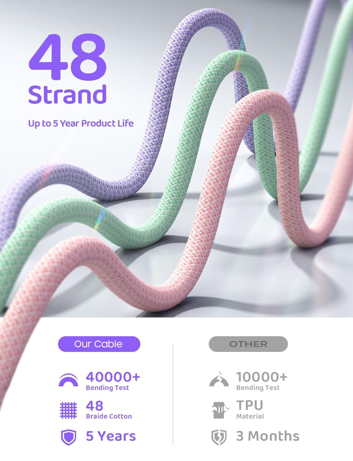 This fast-charging USB-C cable is a game-changer! The durable braided nylon feels premium and resists tangles, while the 3A power output charges my devices super quickly. Love that it works with iPhone 15/16 Pros, iPads, and Galaxy phones - perfect for my whole family’s gadgets. The data transfer is speedy too at 480Mbps. Whether you need 3ft or 6ft, this sturdy cable outperforms Apple’s original cords at a fraction of the price. A must-have accessory!