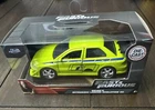 The product is a 1:32 scale diecast model of Brian's Mitsubishi Lancer Evolution from the movie "2 Fast 2 Furious" in a green color. Manufactured by Jada Toys in 2020 as part of the Fast & Furious series, this special edition vehicle features moving parts and comes in an unopened box. Designed for ages 8 and up, this collectible toy is a limited edition piece that captures the essence of the iconic car from the Fast and Furious franchise.