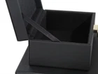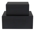 Beautiful boxes are handcrafted very well,wood construction covered with high quality black faux leather,lined with soft velvet,keep your favorite items away from scratches and dust. Hand-made jewelry storage boxes organizer are great for clearing space on the dresser. Store your necklaces, rings, bracelets, watches, sunglasses and other valuables in a safe place. Elegant way to store needed items, hide clutter anywhere in the home, using these boxes on your entrance table to store gloves wallet keys and remotes! Set of 2 pcs storage boxes, perfect for storing medications photos keepsakes and other objects, you can use them separately. Also a sophisticated touch of elegance to your room. Useful boxes for decorative purposes and do an excellent job, functional and decorative, very glamorous decor. Set of 2 nested Boxes size: L: 9 x 6.5 x 3.9inches S: 6.9 x 4.7 x 3.2 inches.
