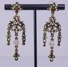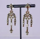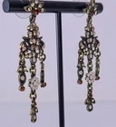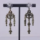 Faux Mid 19th Century Victorian Era Chandelier Faux Opal Smoky Topaz Dainty Earings. Bronze toned chandelier earings set with opal (in the shape of a flower), champagne, diamond and smokey topaz crystal cut colored glass stones. Brand/Mark - Unbranded/Unmarked Condition - Good condition, 2 Slightly dead stones that are barely visible. Measurements - 2" long and 3/4" wide. Type- Pierced Ear. L/4 Belle Kathryne sells preloved vintage to modern day jewelry at affordable prices so that everyone, in every tax bracket, can curate and build their very own unique collection of jewelry! Item color may appear different on screen vs in person. I AM in no way an EXPERT at what is or isn't vintage, all I can do is give any information I may know or my OPINION on condition & wear-ability...this means something different to everyone. I sell pre-owned jewelry and do my best to show any wear or defect on each piece. Please look at the pictures before purchasing. All items sold by Belle Kathryne are sold AS IS and might possibly need cleaning.