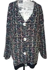 This oversized size medium cardigan sweater by Favlux features a fuzzy sparkle weave, offering both comfort and style. Perfect for layering in cooler weather, its fit makes it a versatile choice for any wardrobe. It measures 27" in length from the top seam of the shoulder to the bottom hem and 26" from pit to pit. Based on its measurements it would be an XL but it is meant to be oversized. Please see all photographs as they are part of the description. Shipped with USPS Ground Mail. J343