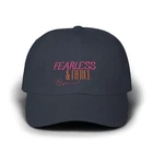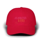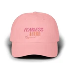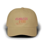 The Fearless & Fierce cap by Intrinsic Viicssitude is a motivational accessory that exudes confidence and positivity. Perfect for everyday wear, this comfortable cap is ideal for individuals who seek inspiration in their daily lives. It's also relevant for empowering holidays and events like International Women's Day, exercise classes, or motivational workshops. Product features - Comfortable fit for everyday wear - 6-panel structure with eyelets One size Crown height, in 3.12 Diameter, in 6.62 - 7.62 Circumference, in 20.87 - 24.80 Visor length, in 2.91 - Precurved visor with matching underbill - Adjustable snap closure for the perfect fit - 100% cotton material with brand sticker Care instructions - Use warm water and dish soap and clean spots off your hat. It's not necessary to soak the whole item. For hard to clean spots use a soft bristled brush.