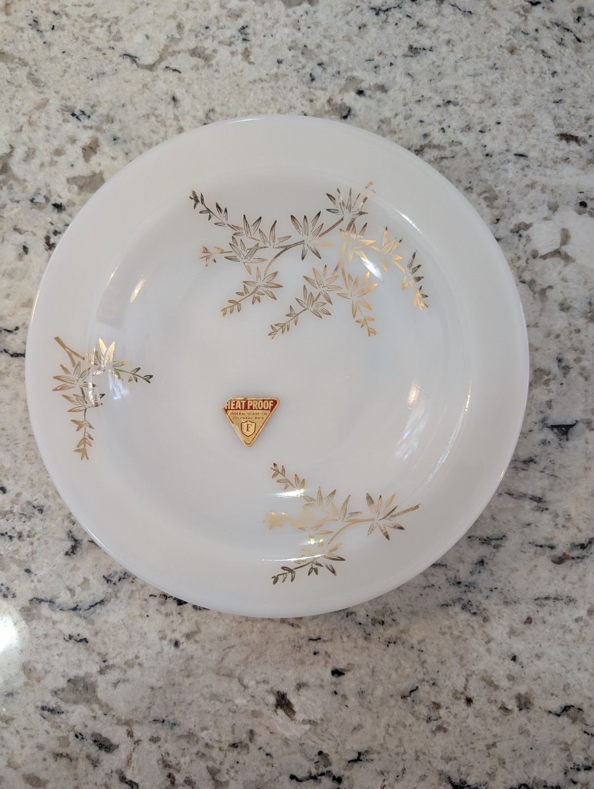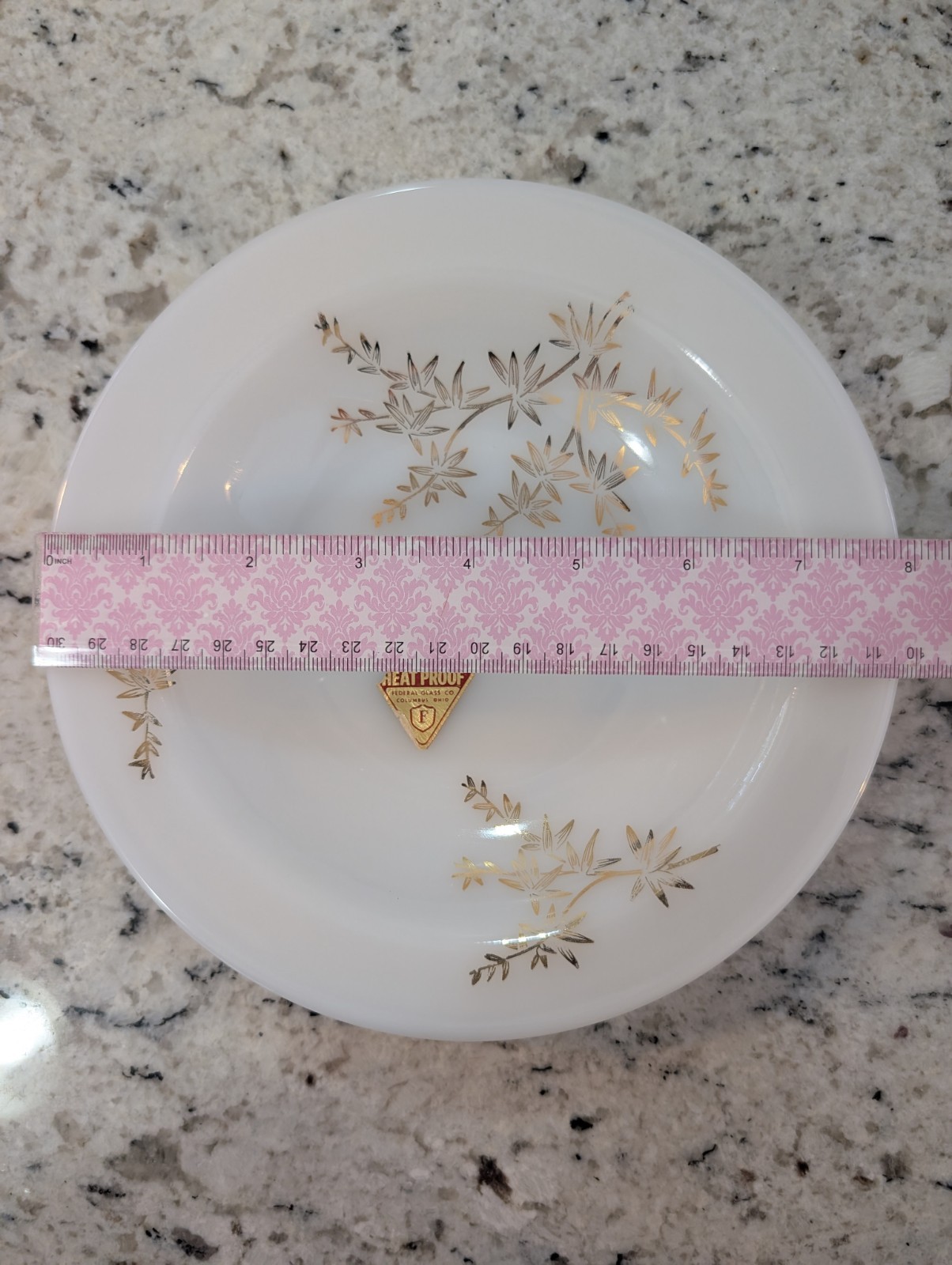 Federal Milk Glass Serving Bowl with Golden Glory Accents