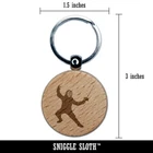 Fencer Holding Fencing Swords Engraved Wood Round Keychain Tag Charm