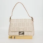 Brand: Fendi Model: Baguette Color: White Material: Canvas Inclusions: Dust bag Dimensions: W30cm x H19cm x D11cm Shoulder Drop 18 - 23cmrop:18 - 23cm Serial number: 2415-8BR001-038 Country of origin: Italy Condition: AB - good condition. Outside condition : slight lose shape , rubbing Inside condition : rubbing , slight pen mark Handle condition : lose shape , slight rubbing Corner condition : slight rubbing Metal fittings condition : scratches , painting off Odor : There is keeping(storage) smell Our eBay Store Fendi Baguette White Canvas Shoulder Bag (Pre-Owned) Retail Price: $2556.00 Brand: Fendi Model: Baguette Color: White Material: Canvas Inclusions: Dust bag Dimensions: W30cm x H19cm x D11cm Shoulder Drop 18 - 23cmrop:18 - 23cm Serial number: 2415-8BR001-038 Country of origin: Italy Condition: AB - good condition. Outside condition : slight lose shape , rubbing Inside condition : rubbing , slight pen mark Handle condition : lose shape , slight rubbing Corner condition : slight rubbing Metal fittings condition : scratches , painting off Odor : There is keeping(storage) smell GUARANTEED 100% AUTHENTIC Simple. Free. 30-Day Returns. We understand returning an item can be a hassel. Not with us. If you don't love the item you purchased—for any reason—simply return it within 30 days for a full refund. Items returned must be in their original, unused condition with all authenticity cards, dust covers, tags, packaging and protector tapes intact. Items returned in any other condition will be subject to a restocking fee. Payment & Shipping We accept all major credit cards (Visa, Mastercard, American Express and Discover), as well as PayPal and Google Pay. We offer free shipping on all orders and ship via USPS, DHL, UPS and FedEx. Shipping times vary by location and are displayed in the 'Shipping, Returns & Payments' window. If you need a more expedited method of shipment, contact us and we will try our best to arrange it. Once your order has shipped, we will send you the tracking number promptly. About Us Based in Minneapolis, MN USA, with warehouses worldwide, we are a luxury goods outlet store, with over 20 years of experience, featuring authentic designer shoes, clothing, handbags and accessories from some of the world's most coveted brands—at a fraction of their retail price. Everything we sell is guaranteed to be 100% authentic, and we stand behind the authenticity of our merchandise with a money-back guarantee. Please know the pictures in our listing are of the actual product and are NOT stock photos. All of our photos are professionally taken in our warehouse studios. Contact Us If you have any questions—about our items, shipping, returns, etc.—please reach out to us. We love to help. Send us a message through eBay. We usually respond within a few hours or less. Happy shopping!
