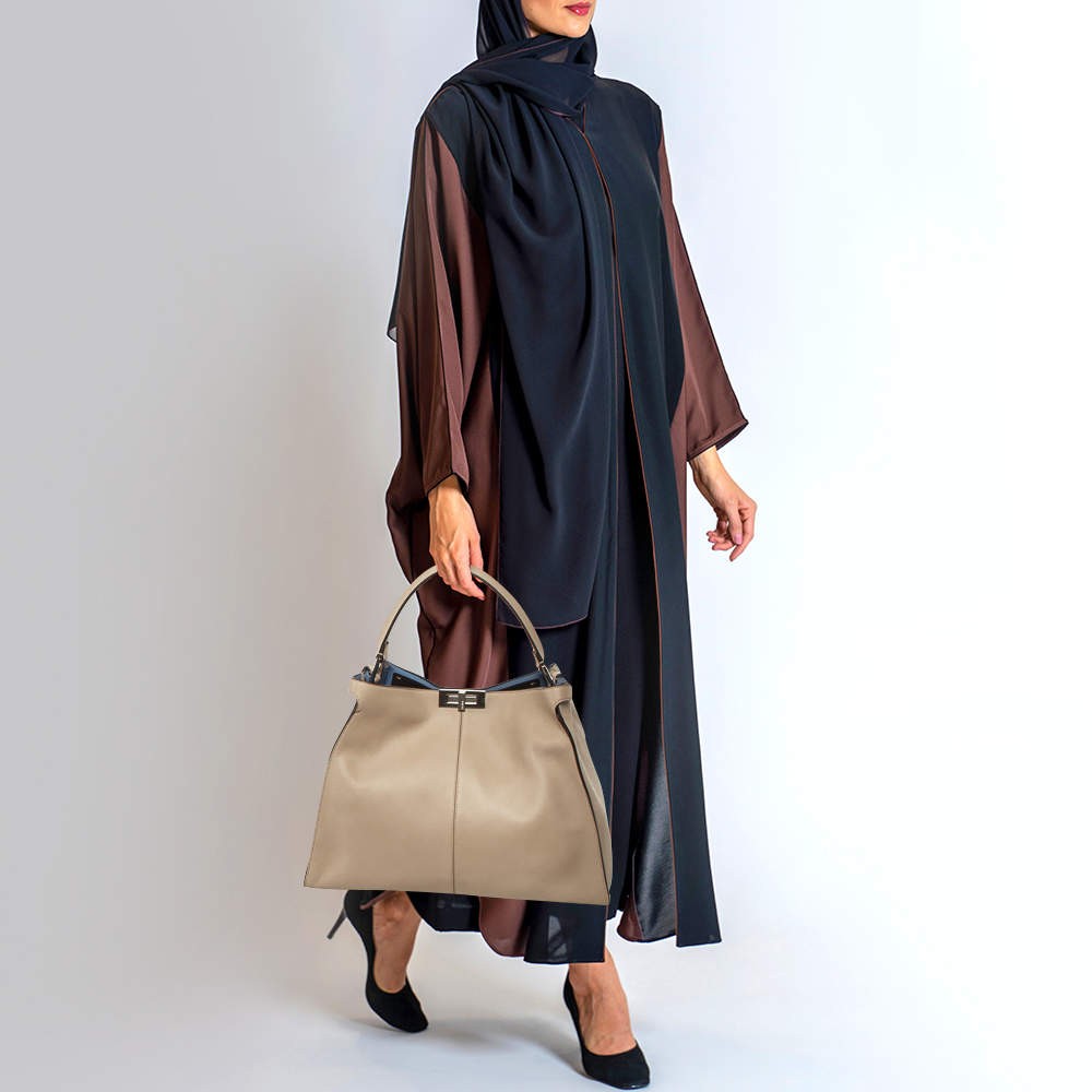 Our eBay Store About Us Contact Us Add to Favorite Sellers Fendi Beige Leather Large X Lite Peekaboo Top Handle Bag This generously sized top handle option redefines quiet luxury with its soft beige leather and deconstructed silhouette. An elegant fusion of function and fashion-forward thinking. Product Details Brand Fendi Includes Original Dustbag, Info Booklet, Rain Protection Cover, Brand Tag Certified by The Luxury Closet This item has gone through a detailed authentication process overseen by our experts. We offer a lifetime guarantee of authenticity on all our items. How We Check The in-house team of experts at The Luxury Closet is highly trained to verify the authenticity and the condition of the luxury products. They ensure that only 100% authentic items are put on sale.The evaluation process is unique with its own mix of assessment criteria and differs according to the category. Each item is evaluated based on the following combination of hallmarks, hardware, stitching, symmetry, material, craftsmanship, stamping, codes, hologram stickers, and packaging. Our authenticators also check if the items have been modified or amended (e.g., aftermarket diamonds, replaced batteries, repaired bags, etc.) Please note that this handbag may have a perfume scent, as it was stored and packaged in Dubai where such fragrances are commonly used. International Buyers Import duties, taxes and charges are not included in the item price. These charges are the buyers responsibility. Please check with your country’s customs office to determine what these additional cost will be prior to buying.