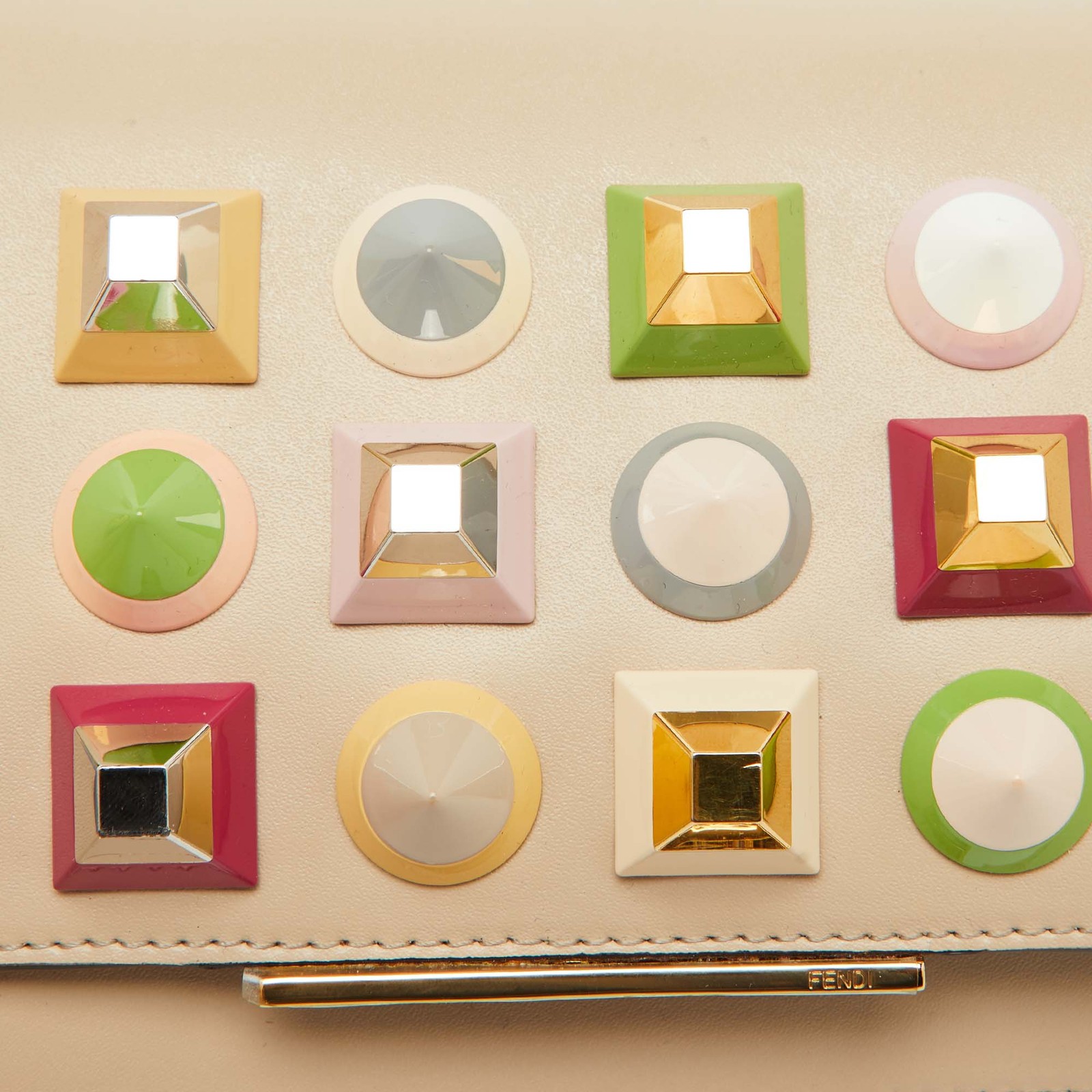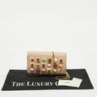 This Fendi Wallet on Chain combines functionality with striking design. The beige leather is accented with signature studs, creating a modern statement. Compact yet spacious enough for essentials, it seamlessly transitions from day to night.Certified by The Luxury Closet - This item has gone through a detailed authentication process overseen by our experts. We offer a lifetime guarantee of authenticity on all our items. Import duties, taxes and charges are not included in the item price. These charges are the buyers responsibility. Please check with your country’s customs office to determine what these additional cost will be prior to buying. Our eBay Store About Us Contact Us Add to Favorite Sellers Fendi Beige Leather Studded Flap Wallet on Chain $481.8 This Fendi Wallet on Chain combines functionality with striking design. The beige leather is accented with signature studs, creating a modern statement. Compact yet spacious enough for essentials, it seamlessly transitions from day to night. Product Details Brand Color Beige Dimensions Height: 12 cm, Width: 4 cm, Length: 19 cm Material Leather Size Outsole Width Outsole Length Heel Height Includes The Luxury Closet Packaging, Info Card, Brand Tag Certified by The Luxury Closet This item has gone through a detailed authentication process overseen by our experts. We offer a lifetime guarantee of authenticity on all our items. How We Check The in-house team of experts at The Luxury Closet is highly trained to verify the authenticity and the condition of the luxury products. They ensure that only 100% authentic items are put on sale.The evaluation process is unique with its own mix of assessment criteria and differs according to the category. Each item is evaluated based on the following combination of hallmarks, hardware, stitching, symmetry, material, craftsmanship, stamping, codes, hologram stickers, and packaging. Our authenticators also check if the items have been modified or amended (e.g., aftermarket diamonds, replaced batteries, repaired bags, etc.) International Buyers Import duties, taxes and charges are not included in the item price. These charges are the buyers responsibility. Please check with your country’s customs office to determine what these additional cost will be prior to buying.