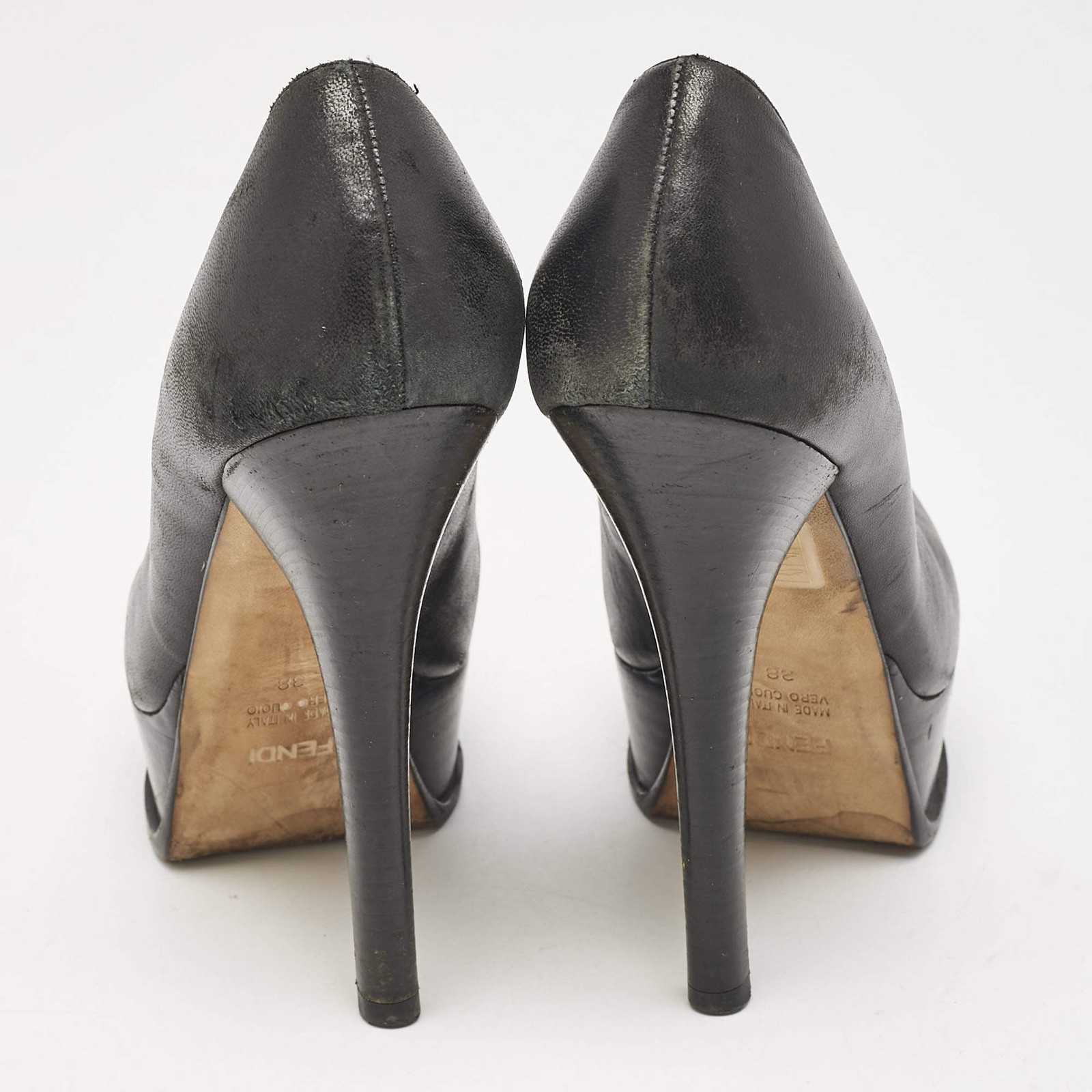 Our eBay Store About Us Contact Us Add to Favorite Sellers Fendi Black Leather Fendista Platform Pumps Size 38 This pair of Fendista pumps from Fendi is truly chic and beautiful. These shoes are designed using black leather on the exterior, with a brand signature elevating the front. They have platforms, 14cm heels, and a slip-on closure Product Details Brand Fendi Color Black Includes The Luxury Closet Packaging Outsole Length 20.5 cm Outsole Width 7 cm Size 38 Certified by The Luxury Closet This item has gone through a detailed authentication process overseen by our experts. We offer a lifetime guarantee of authenticity on all our items. How We Check The in-house team of experts at The Luxury Closet is highly trained to verify the authenticity and the condition of the luxury products. They ensure that only 100% authentic items are put on sale.The evaluation process is unique with its own mix of assessment criteria and differs according to the category. Each item is evaluated based on the following combination of hallmarks, hardware, stitching, symmetry, material, craftsmanship, stamping, codes, hologram stickers, and packaging. Our authenticators also check if the items have been modified or amended (e.g., aftermarket diamonds, replaced batteries, repaired bags, etc.) International Buyers Import duties, taxes and charges are not included in the item price. These charges are the buyers responsibility. Please check with your country’s customs office to determine what these additional cost will be prior to buying.