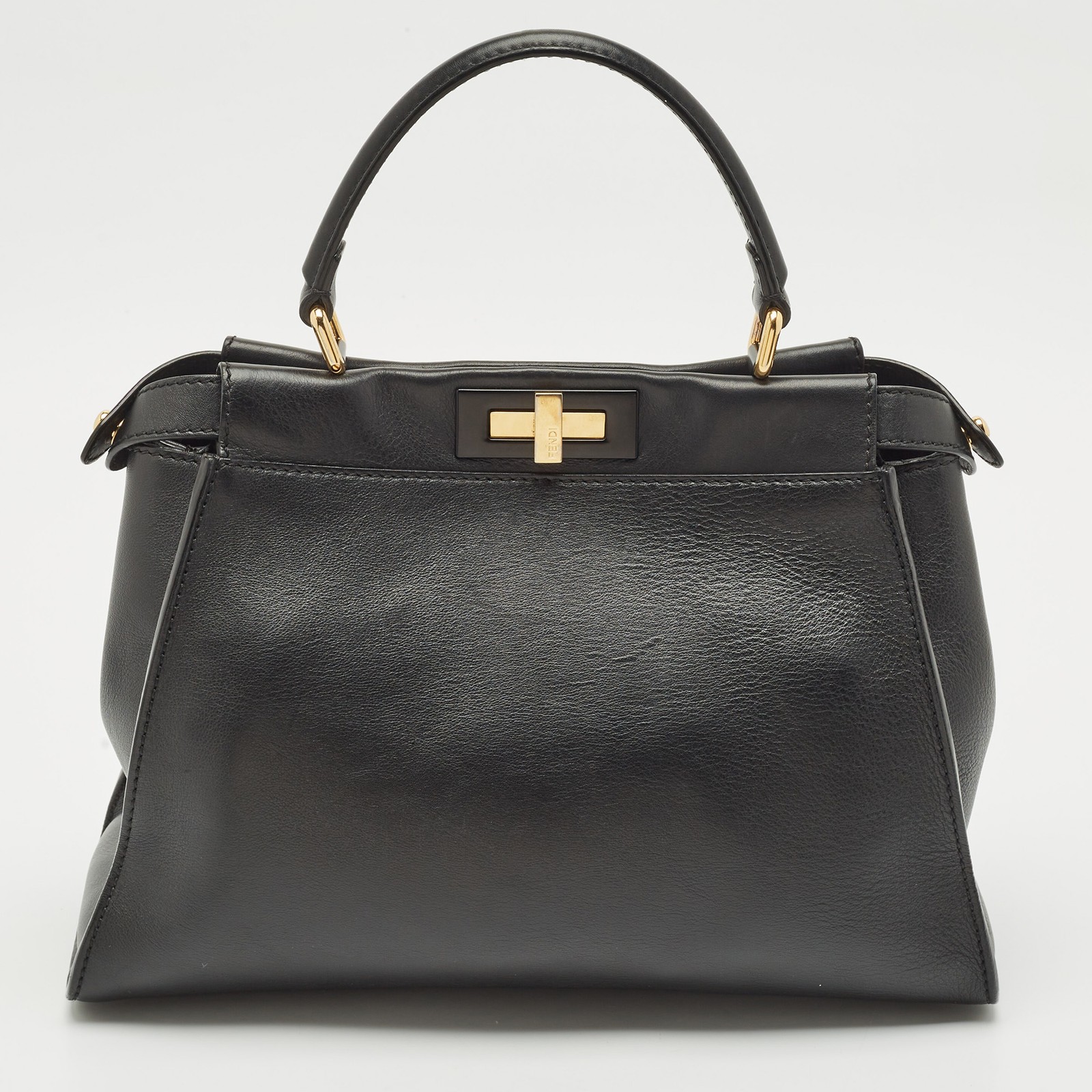 Sculpted in classic black leather, the Fendi Peekaboo bag is all about quiet luxury. Its dual compartment interior, top handle, and twist lock closure exude timeless elegance. A wardrobe investment that blends functionality with iconic Italian design.Certified by The Luxury Closet - This item has gone through a detailed authentication process overseen by our experts. We offer a lifetime guarantee of authenticity on all our items. Import duties, taxes and charges are not included in the item price. These charges are the buyers responsibility. Please check with your country’s customs office to determine what these additional cost will be prior to buying. Our eBay Store About Us Contact Us Add to Favorite Sellers Fendi Black Leather Medium Peekaboo Top Handle Bag $1535.6 Sculpted in classic black leather, the Fendi Peekaboo bag is all about quiet luxury. Its dual compartment interior, top handle, and twist lock closure exude timeless elegance. A wardrobe investment that blends functionality with iconic Italian design. Product Details Brand Color Black Dimensions Material Leather Size Outsole Width Outsole Length Heel Height Includes Certified by The Luxury Closet This item has gone through a detailed authentication process overseen by our experts. We offer a lifetime guarantee of authenticity on all our items. How We Check The in-house team of experts at The Luxury Closet is highly trained to verify the authenticity and the condition of the luxury products. They ensure that only 100% authentic items are put on sale.The evaluation process is unique with its own mix of assessment criteria and differs according to the category. Each item is evaluated based on the following combination of hallmarks, hardware, stitching, symmetry, material, craftsmanship, stamping, codes, hologram stickers, and packaging. Our authenticators also check if the items have been modified or amended (e.g., aftermarket diamonds, replaced batteries, repaired bags, etc.) International Buyers Import duties, taxes and charges are not included in the item price. These charges are the buyers responsibility. Please check with your country’s customs office to determine what these additional cost will be prior to buying.