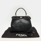 Our eBay Store About Us Contact Us Add to Favorite Sellers Fendi Black Leather Medium Peekaboo Top Handle Bag Elevate your daily style with this medium Peekaboo bag from Fendi in smooth black leather. Iconic twist-lock closures and a structured top handle make it a refined choice for the office or events. Carry it with sharp blazers or a silk midi dress. Product Details Brand Fendi Includes Original Dustbag, Detachable Strap Certified by The Luxury Closet This item has gone through a detailed authentication process overseen by our experts. We offer a lifetime guarantee of authenticity on all our items. How We Check The in-house team of experts at The Luxury Closet is highly trained to verify the authenticity and the condition of the luxury products. They ensure that only 100% authentic items are put on sale.The evaluation process is unique with its own mix of assessment criteria and differs according to the category. Each item is evaluated based on the following combination of hallmarks, hardware, stitching, symmetry, material, craftsmanship, stamping, codes, hologram stickers, and packaging. Our authenticators also check if the items have been modified or amended (e.g., aftermarket diamonds, replaced batteries, repaired bags, etc.) Please note that this handbag may have a perfume scent, as it was stored and packaged in Dubai where such fragrances are commonly used. International Buyers Import duties, taxes and charges are not included in the item price. These charges are the buyers responsibility. Please check with your country’s customs office to determine what these additional cost will be prior to buying.