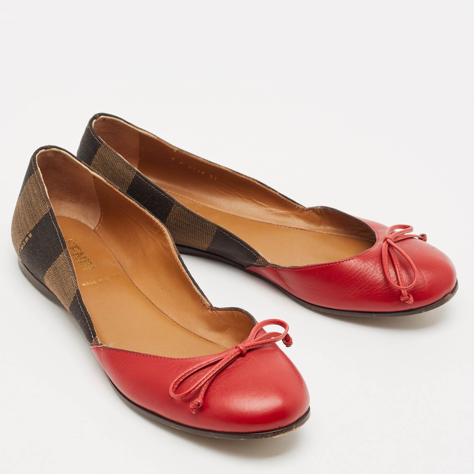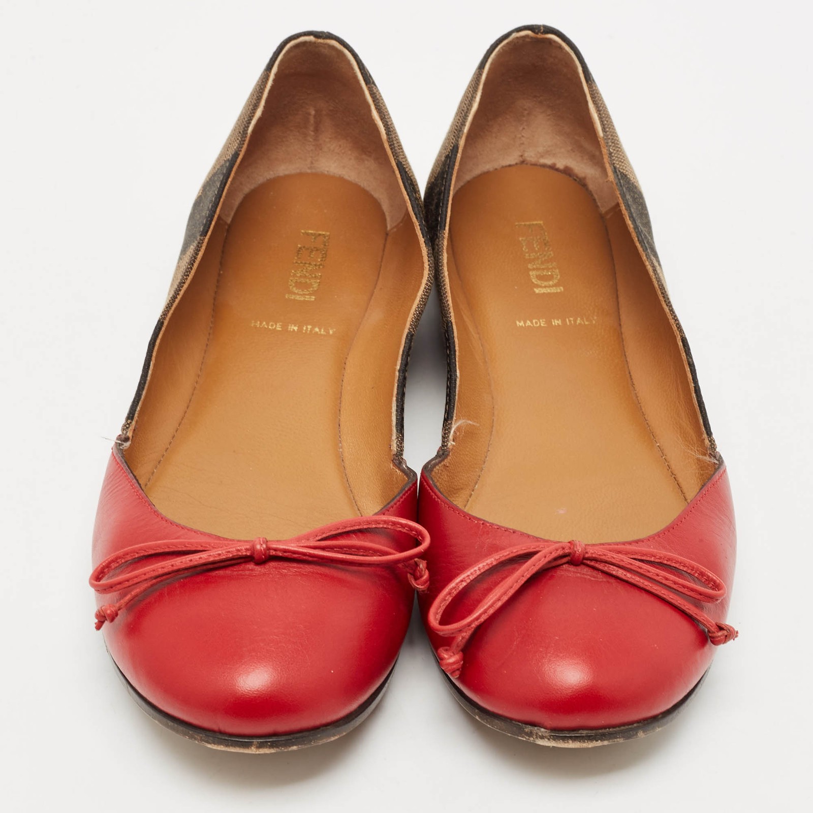 Our eBay Store About Us Contact Us Add to Favorite Sellers Fendi BrownRed Leather And Canvas Toe Ballet Flats Size 37 There is beauty in these Fendi ballet flats not only by way of their look but also in the way they have been made. They are covered in canvas and leather and finished with bows on the uppers. Product Details Brand Fendi Color Red Includes The Luxury Closet Packaging Outsole Length 27 cm Outsole Width 8.5 cm Size 37 Certified by The Luxury Closet This item has gone through a detailed authentication process overseen by our experts. We offer a lifetime guarantee of authenticity on all our items. How We Check The in-house team of experts at The Luxury Closet is highly trained to verify the authenticity and the condition of the luxury products. They ensure that only 100% authentic items are put on sale.The evaluation process is unique with its own mix of assessment criteria and differs according to the category. Each item is evaluated based on the following combination of hallmarks, hardware, stitching, symmetry, material, craftsmanship, stamping, codes, hologram stickers, and packaging. Our authenticators also check if the items have been modified or amended (e.g., aftermarket diamonds, replaced batteries, repaired bags, etc.) International Buyers Import duties, taxes and charges are not included in the item price. These charges are the buyers responsibility. Please check with your country’s customs office to determine what these additional cost will be prior to buying.