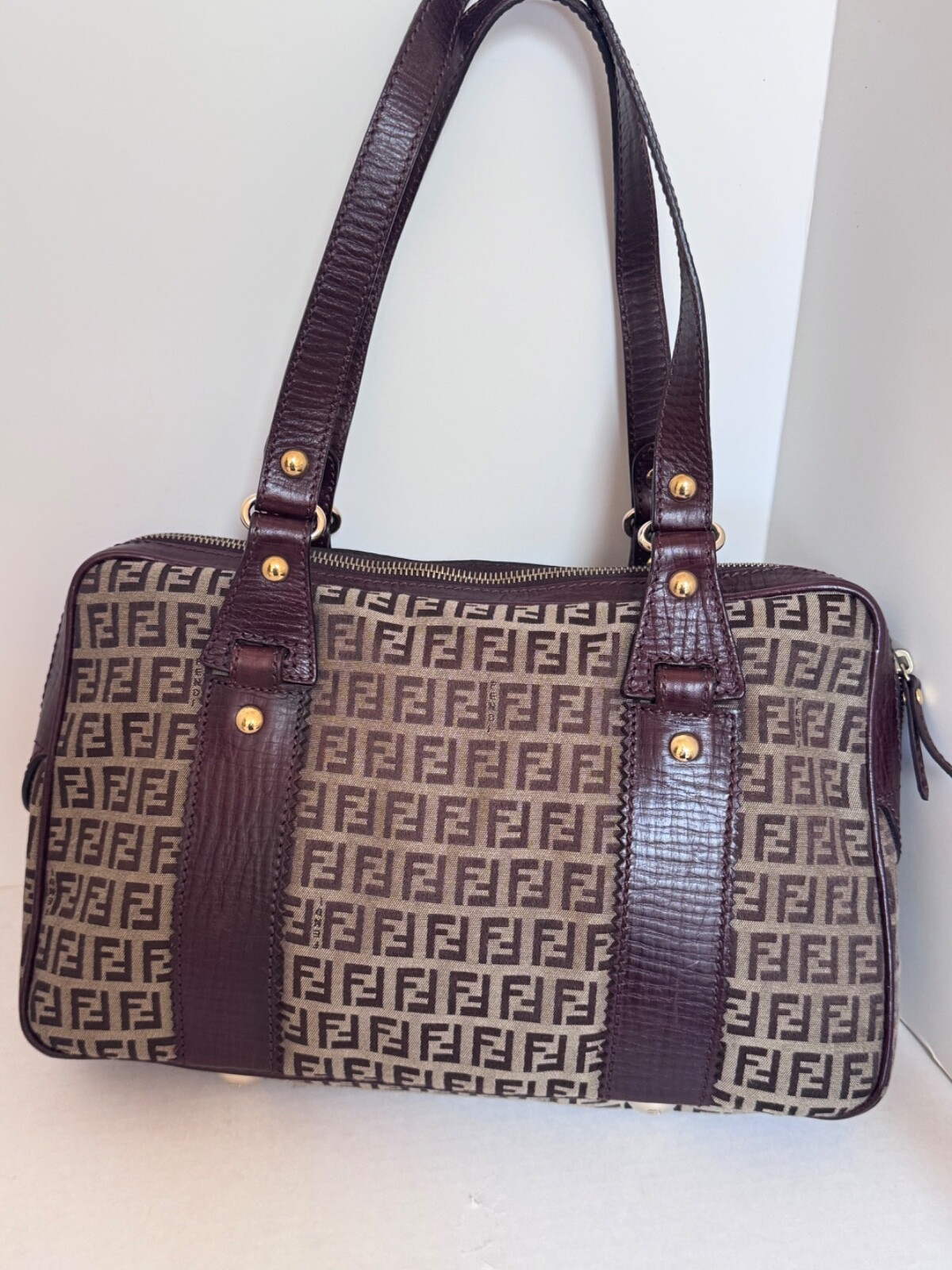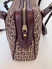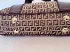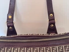 Crafted with a harmonious blend of luxury and practicality, the Fendi Shoulder Bag is a stylish essential for anyone with a penchant for high-end fashion. Its sturdy canvas exterior pairs seamlessly with the rich brown leather handle and strap, offering a sophisticated touch to any outfit. The bag features a spacious interior lined with a matching brown fabric, providing a sleek and functional compartment for your daily essentials. Whether you're running errands or enjoying an evening out, this Fendi Handbag brings a timeless elegance to your ensemble I am a retired attorney. Am selling a few of my extensive collection of purses. This purse was barely used. In mint condition. No scratches, tears or stains.