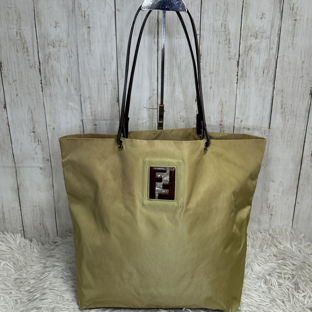 Fendi Tote Bag Nylon FF Logo Yellow Green Khaki Leather Trim /Used++ Features **FENDI Vintage Handbag** This stylish FENDI handbag is perfect for fashion enthusiasts looking for a unique accessory. - **Brand**: FENDI - **Style**: Vintage - **Exterior Color**: Yellow-green, Khaki, Brown - **Size**: Height 33 cm, Width 29 cm, Depth 13.5 cm - **Condition**: Pre-owned with slight scratches and stains; please consider this before purchasing. This handbag is a great addition to any wardrobe, offering both functionality and a touch of luxury. Item Specifics: - C:Exterior Material: Not specified - C:Style: Vintage - C:Exterior Color: Yellow-green, Khaki, Brown - C:Department: Women - C:Size: Height 33 cm, Width 29 cm, Depth 13.5 cm - C:Condition: Pre-owned with slight scratches and stains - C:Country/Region of Specifications Brand Fendi Country Japan Department Woman Theme Bag Item Title Fendi Tote Bag Nylon Ff Logo Leather Yellow Green Khaki Payment Supports managed payments Please pay within 5 days after auction is finished. About Us We are located in Japan. It's our pleasure to make you happy by proposing our recommend item. If you have any questions or request about items, please feel free to ask us. International Buyers - Please Note: -Import duties, taxes, and charges are not included in the item price or shipping charges. These charges are the buyer's responsibility. -Please check with your country's customs office to determine what these additional costs will be prior to bidding/buying. -These charges are normally collected by the delivering freight (shipping) company or when you pick the item up - do not confuse them for additional shipping charges. -We do not mark merchandise values below value or mark items as - gifts - The US and International government regulations prohibit such behavior. Thank you for your understanding.