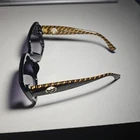 $ 79.2CHANEL 5066 Aviator Sunglasses Y2K CC Logo Black Beige Gradient Plastic Lenses