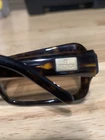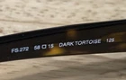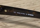 Has some scratches on the lens. Has three small clusters of scratches that you can see on the lenses. On the inside arm it says FS272. 58 15 Dark Tortoise 125. Made in Italy Fendi. The frame has some scratches also. Please review all pictures, they are part of the description.