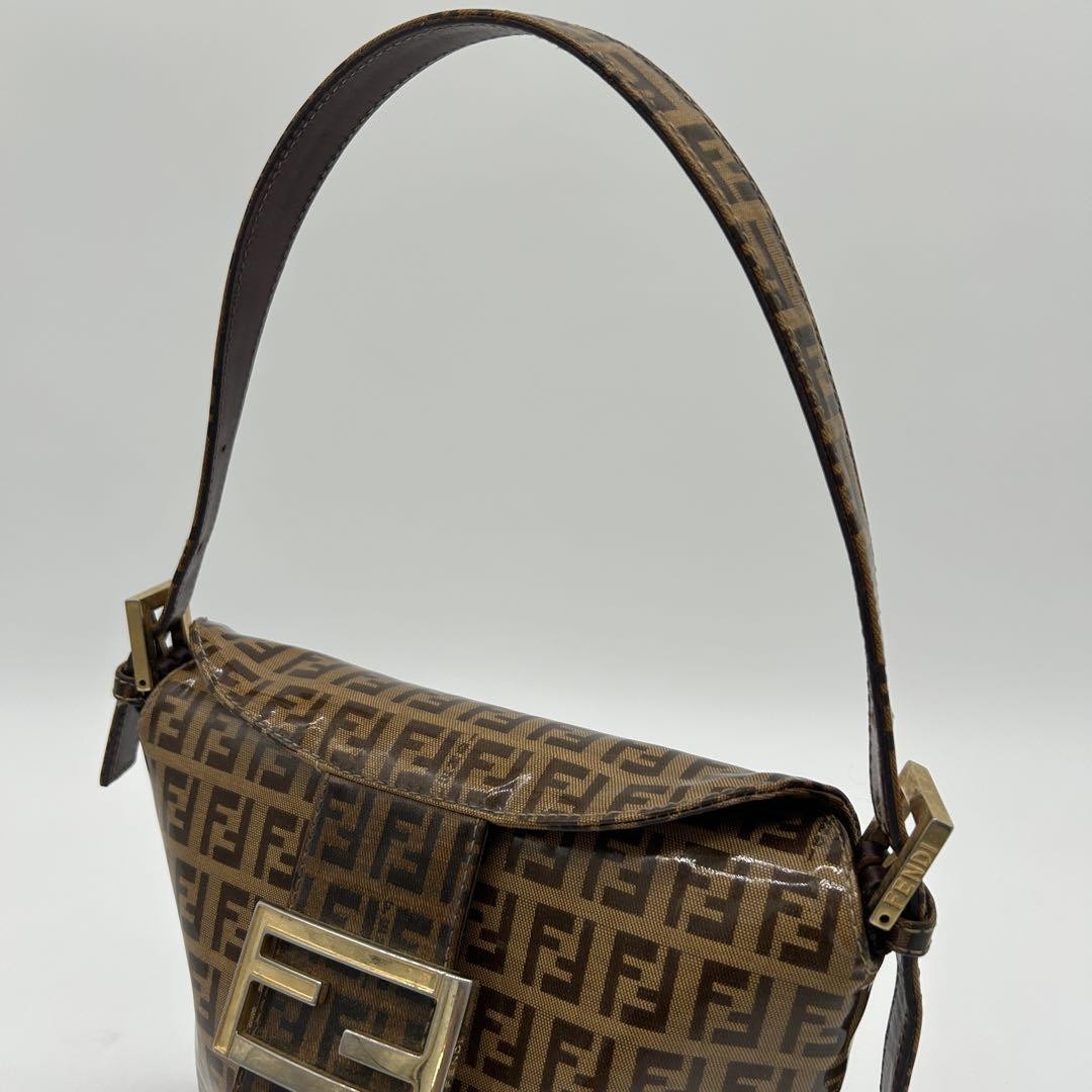 Absolutely love this Fendi Mamma Bucket Bag! The glossy patent leather and rich brown color make it a stunning statement piece. The Zucchino pattern adds a classic, high-end touch, while the spacious interior keeps it practical. Perfect for elevating any outfit—whether casual or dressy. The shoulder strap is comfortable, and the overall quality is outstanding. A must-have for any fashion lover!