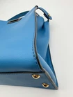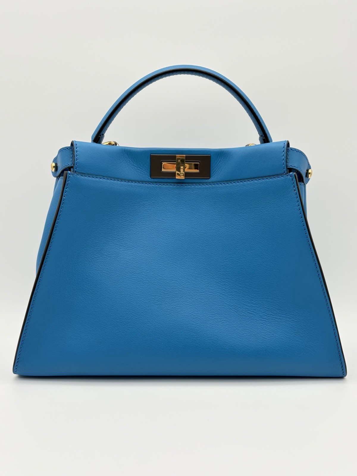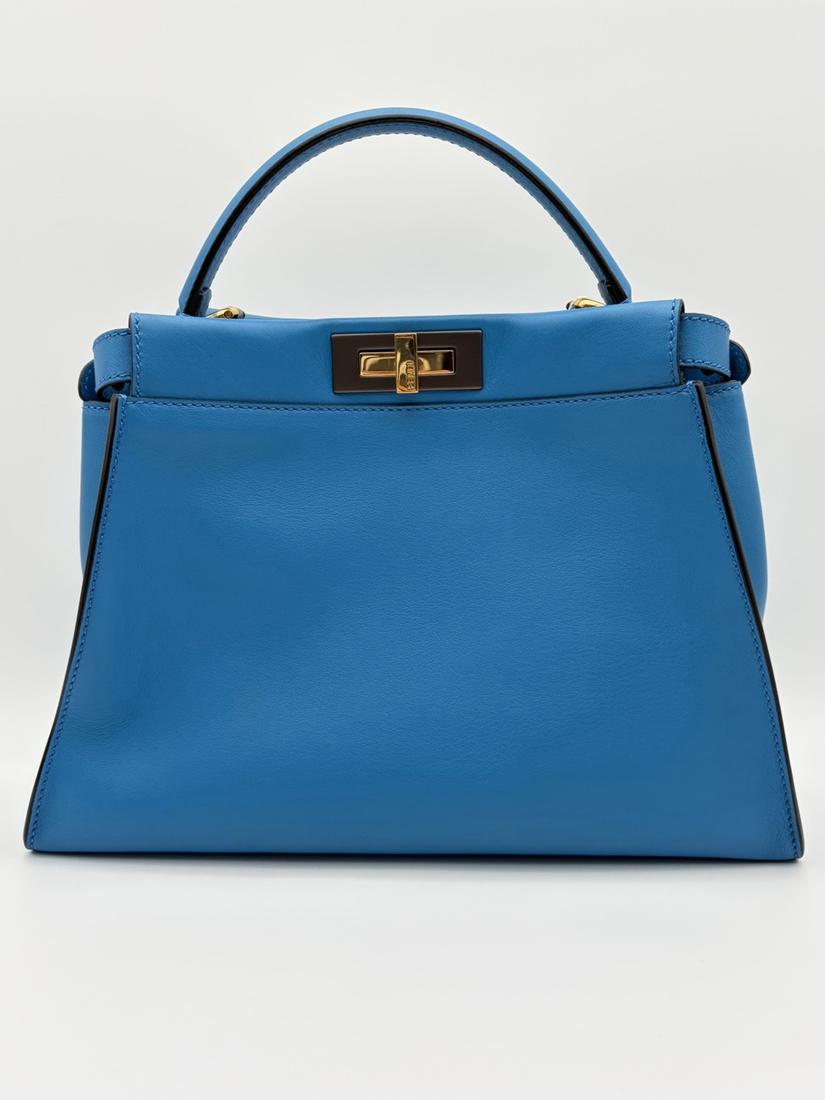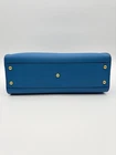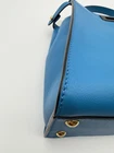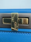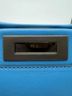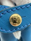 The Fendi Peekaboo Vitello Seta Medium Satchel Leather in Blue PM25040969 is a stylish and versatile handbag designed for the modern woman. With a trapezoid shape and double turn lock closure, this satchel exudes a classic designer vibe. The blue exterior color, gold hardware accents, and blue top handle make it a chic choice for various occasions from casual to formal. Made of high-quality leather with a microfiber and fabric lining, this medium-sized bag includes inner pockets, a detachable strap, and an original dust bag, making it a must-have accessory for any fashion-forward individual. Crafted in Italy, this Fendi Peekaboo bag is a timeless piece that combines functionality and luxury.
