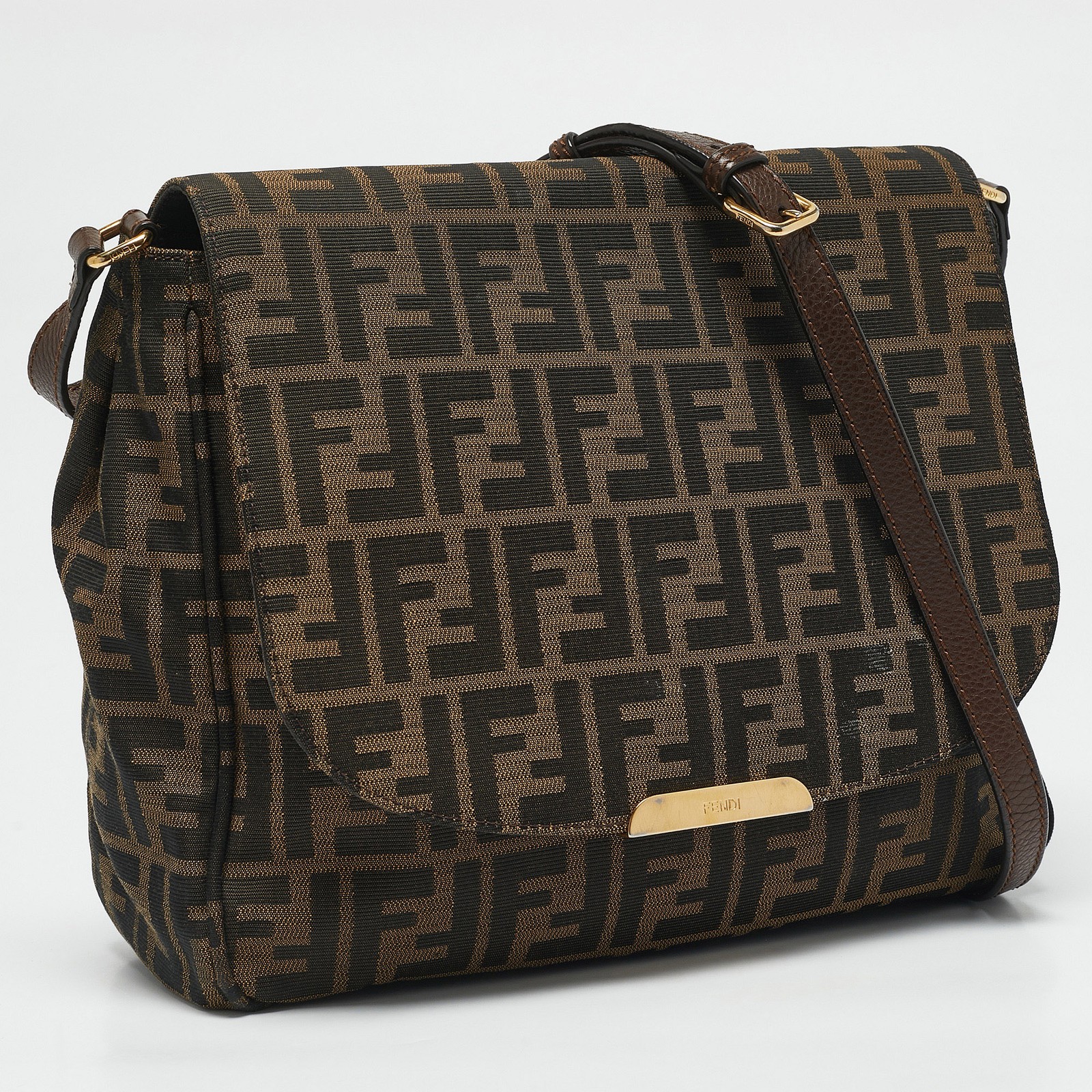 The iconic Fendi Zucca motif takes center stage in this timeless crossbody. Crafted in signature canvas with a flap closure and long shoulder strap, it’s a go to piece for effortless style on the go.Certified by The Luxury Closet - This item has gone through a detailed authentication process overseen by our experts. We offer a lifetime guarantee of authenticity on all our items. Import duties, taxes and charges are not included in the item price. These charges are the buyers responsibility. Please check with your country’s customs office to determine what these additional cost will be prior to buying. Our eBay Store About Us Contact Us Add to Favorite Sellers Fendi Tobacco Zucca Canvas Flap Crossbody Bag $500.5 The iconic Fendi Zucca motif takes center stage in this timeless crossbody. Crafted in signature canvas with a flap closure and long shoulder strap, it’s a go to piece for effortless style on the go. Product Details Brand Color Brown Dimensions Height: 25 cm, Width: 10.5 cm, Length: 27 cm Material Leather Size Outsole Width Outsole Length Heel Height Includes The Luxury Closet Packaging Certified by The Luxury Closet This item has gone through a detailed authentication process overseen by our experts. We offer a lifetime guarantee of authenticity on all our items. How We Check The in-house team of experts at The Luxury Closet is highly trained to verify the authenticity and the condition of the luxury products. They ensure that only 100% authentic items are put on sale.The evaluation process is unique with its own mix of assessment criteria and differs according to the category. Each item is evaluated based on the following combination of hallmarks, hardware, stitching, symmetry, material, craftsmanship, stamping, codes, hologram stickers, and packaging. Our authenticators also check if the items have been modified or amended (e.g., aftermarket diamonds, replaced batteries, repaired bags, etc.) International Buyers Import duties, taxes and charges are not included in the item price. These charges are the buyers responsibility. Please check with your country’s customs office to determine what these additional cost will be prior to buying.