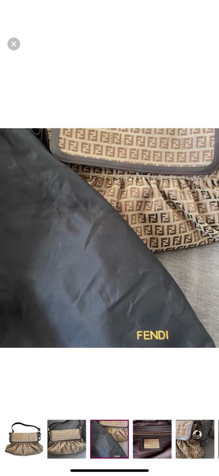 14"L x 4"W x 11"H Condition: Like New Description FENDI The signature Fendi Zucca Bag. It features a durable Zucca canvas with leather trim . Excellent condition., comes with dust bag.